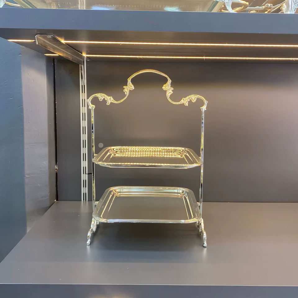 ถาดใส่ช็อกโกแลตทรงใบไม้โลหะสีทองหรูหรา ชั้นวางของตกแต่งสองชั้นสำหรับวางบนโต๊ะ
