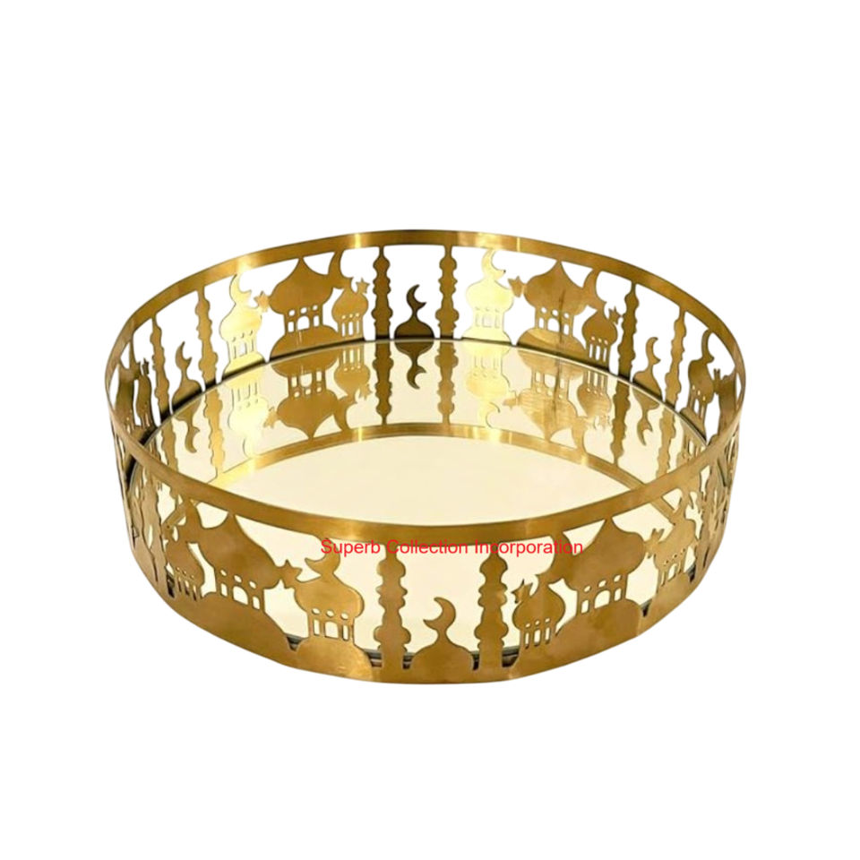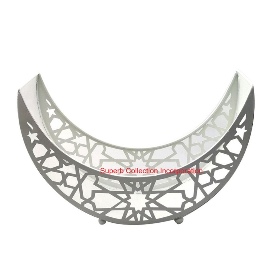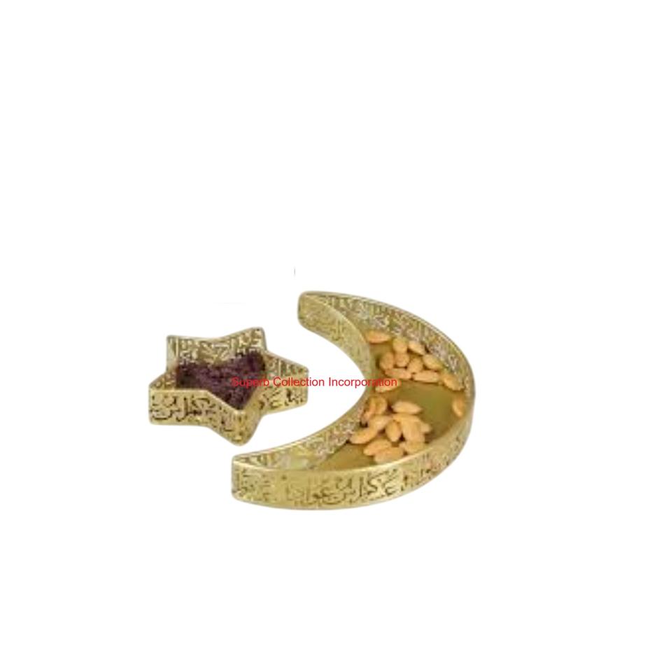 ชุดถาดเสิร์ฟอาหารรูปดาวพระจันทร์สีทองหรูหราพร้อมการประดิษฐ์ตัวอักษรอิสลามสำหรับจัดแสดงขนมหวานและของตกแต่งบ้าน