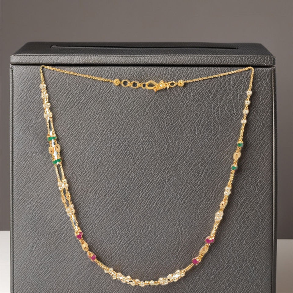 สร้อยคอทองคำประดับมุกสองชั้น ดีไซน์หรูหรา พร้อมลูกปัดสีเขียวและชมพู เครื่องประดับสไตล์ชาติพันธุ์ดั้งเดิมสำหรับผู้หญิง