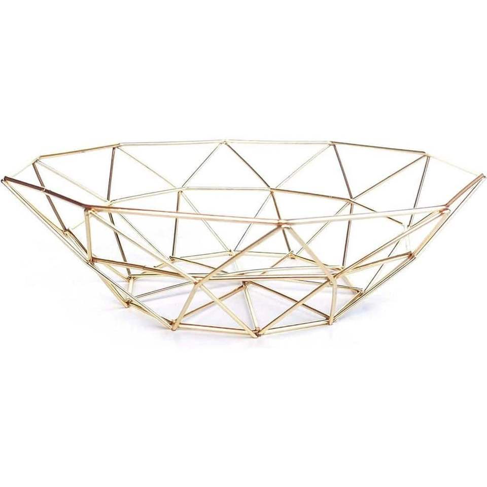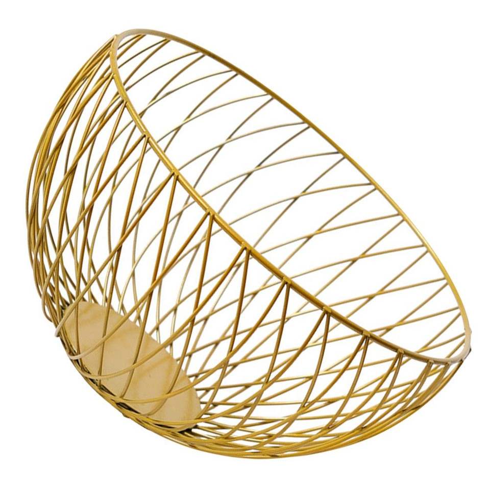 ตะกร้าผลไม้แบบแท่นสีทองหรูหราสำหรับตกแต่งโต๊ะแบบหรูหราด้วยลวดที่ออกแบบมาอย่างทันสมัย