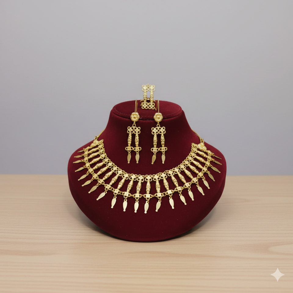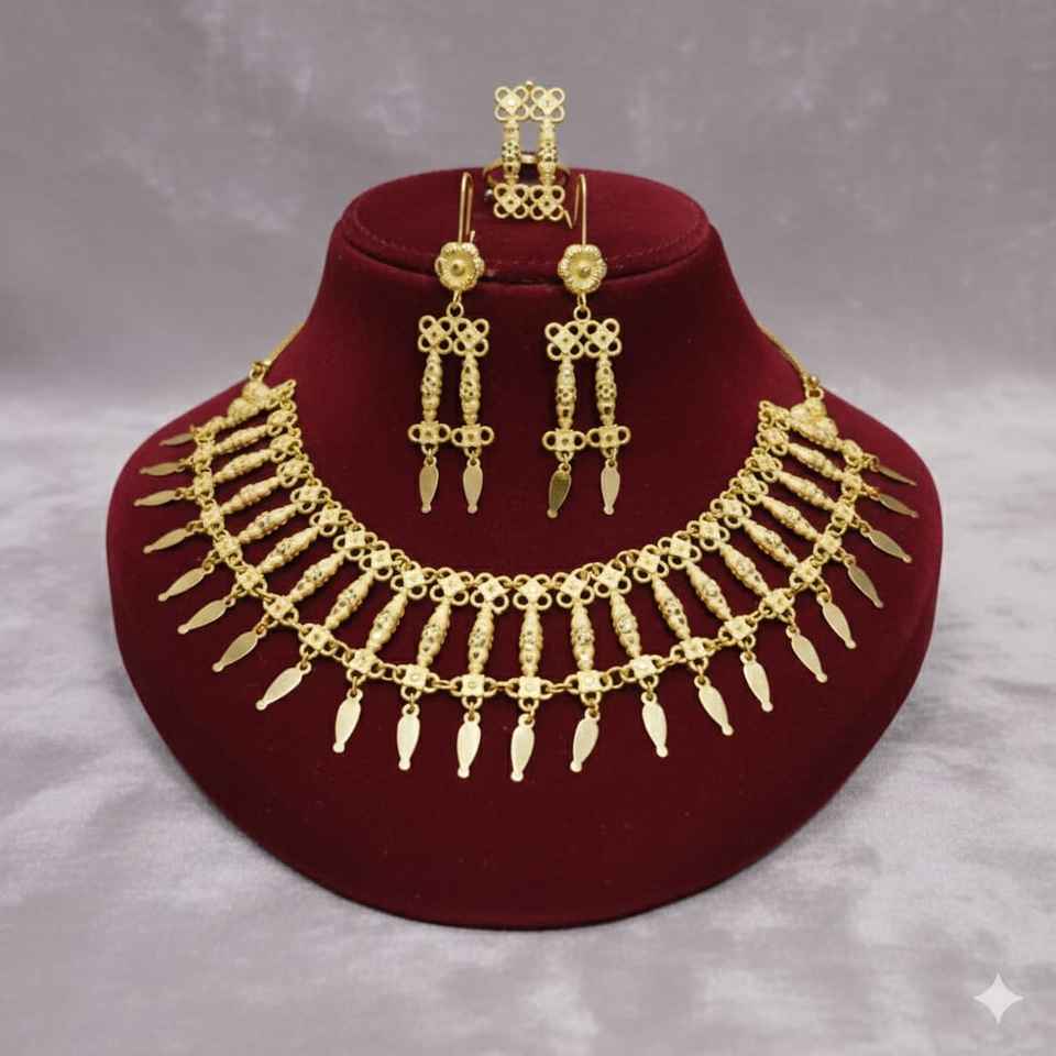 ชุดสร้อยคอทองชุบทองแดงแบบโชคเกอร์ พร้อมต่างหูสำหรับผู้หญิง เครื่องประดับแฟชั่นสำหรับงานปาร์ตี้และเทศกาล