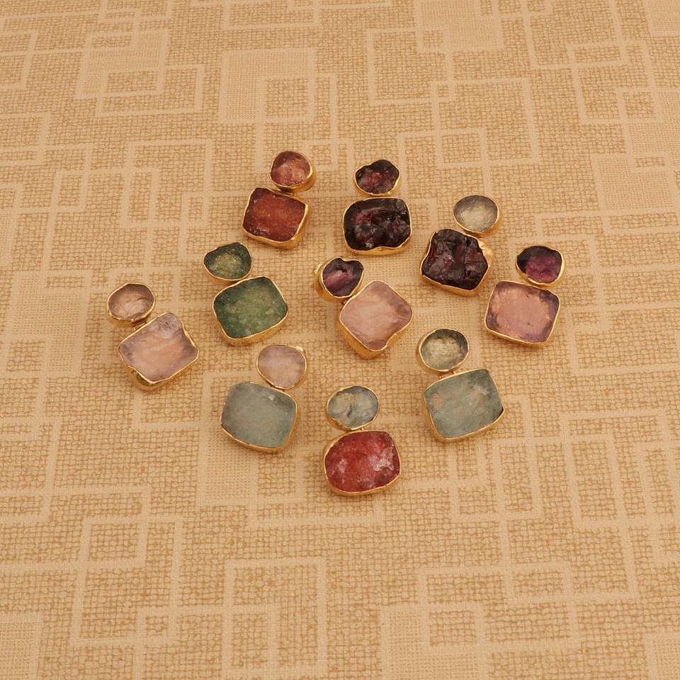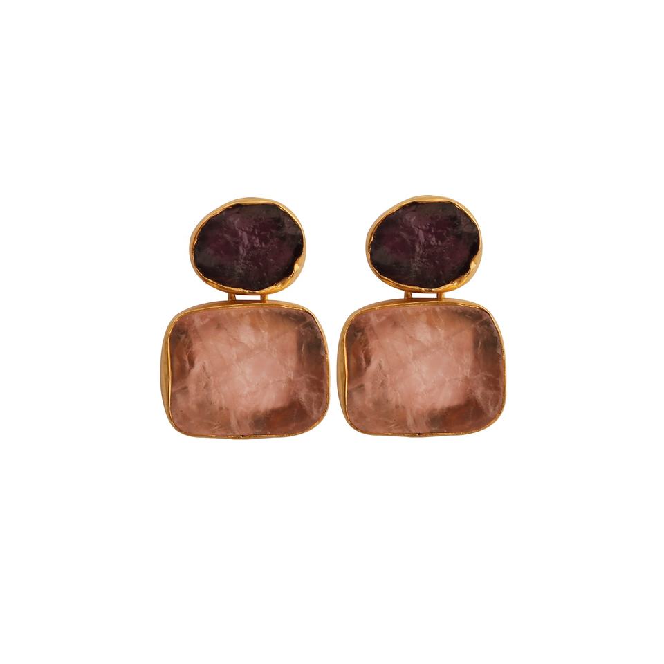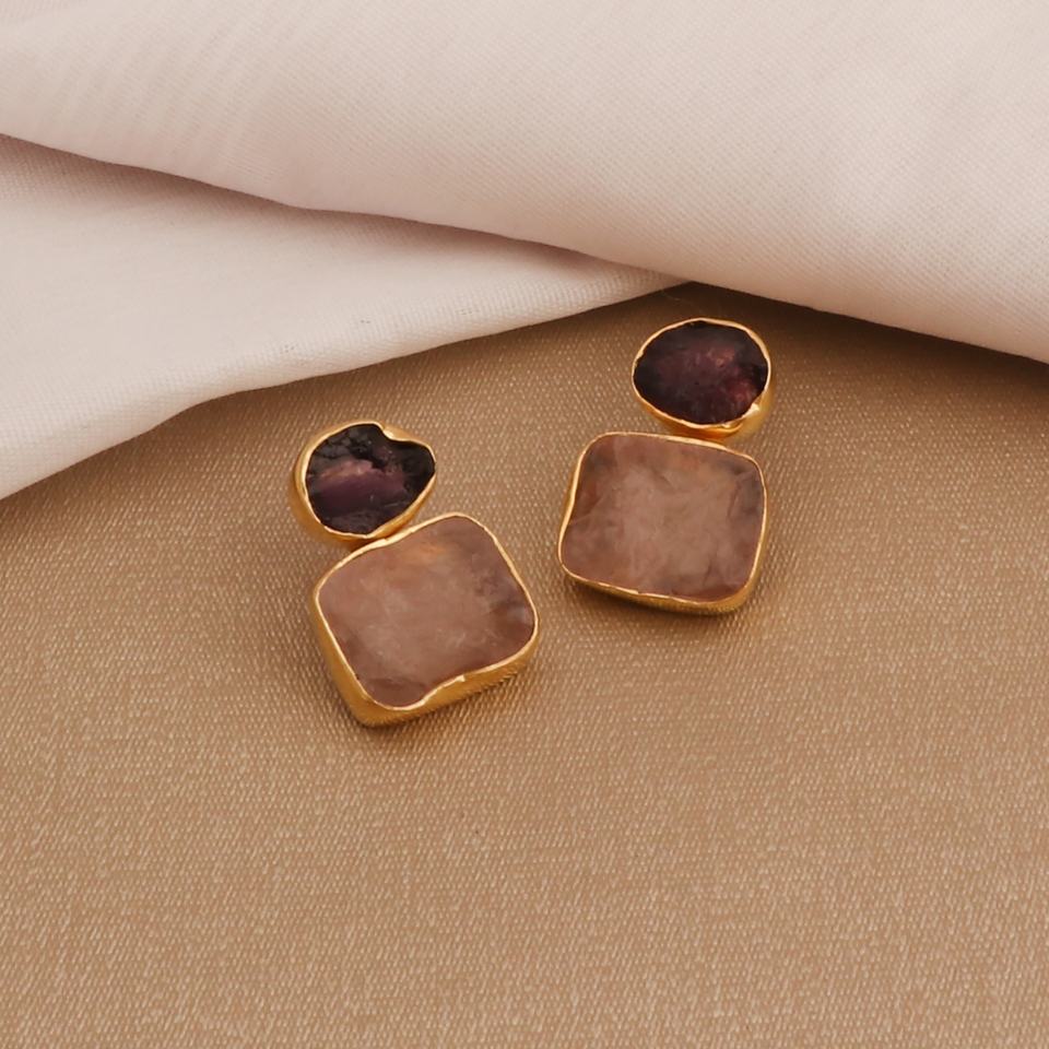 ต่างหูเม็ดหินคู่ชุบทองหรูหราทำด้วยมือชิ้นที่ทันสมัยพร้อมโกเมนโรสควอตซ์อัญมณีสำหรับผู้หญิง