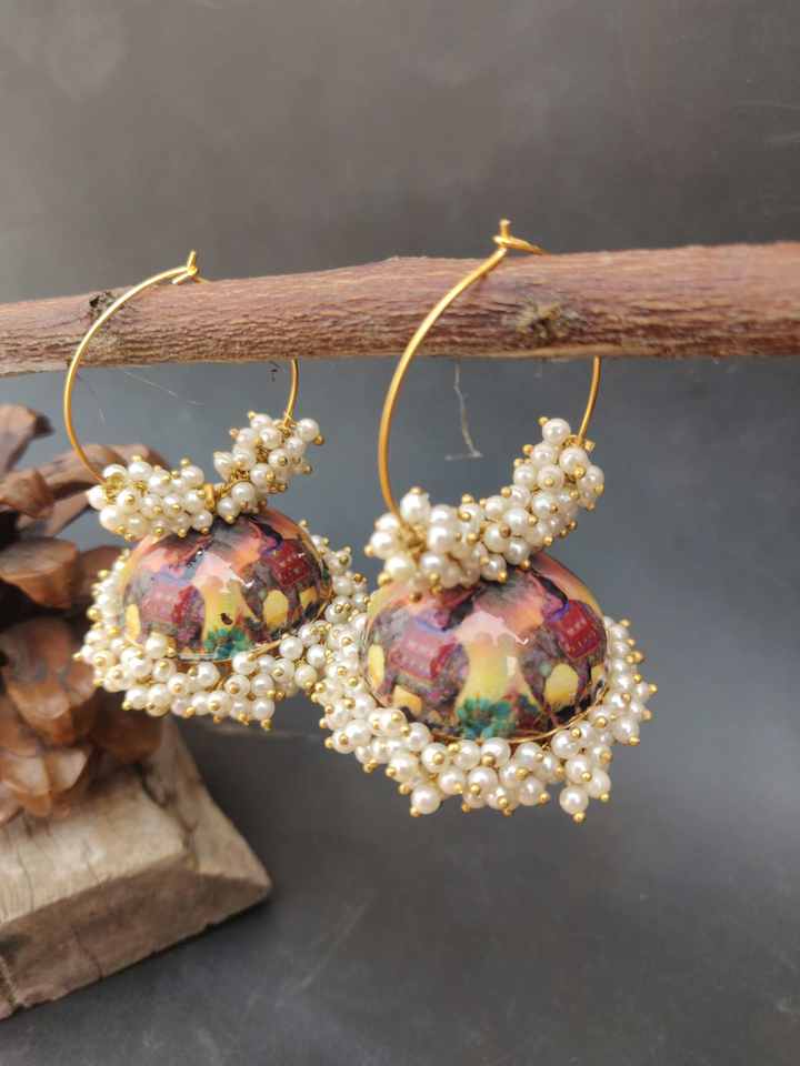 Elegant Gold-Plated Elephant Design Jhumka Bali Hoop Earrings Hand-Painted Meenakari Work Mogra Fitting Pearls for Women Girls