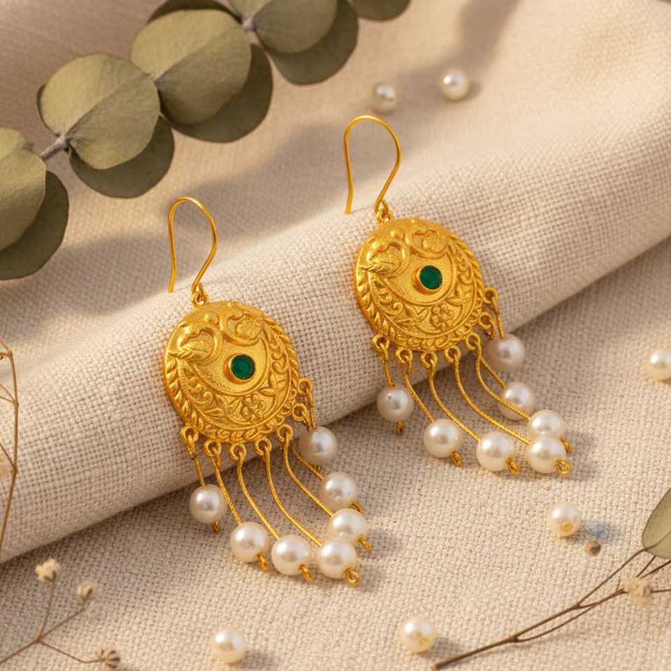 Elegant Gold Plated Long Dangle Earrings for Women Stylish Lightweight Perfect for Parties Weddings and Daily Wear At Good Price