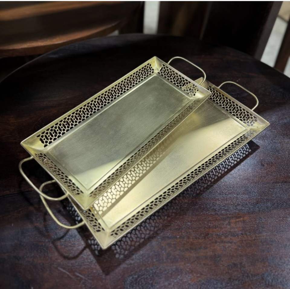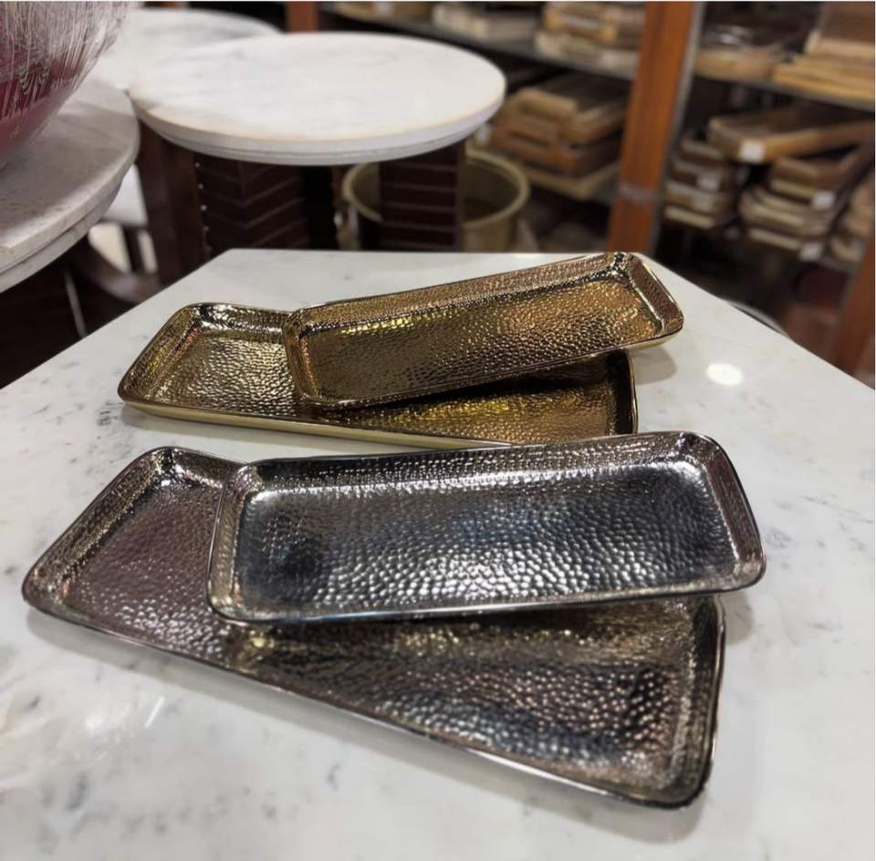 ถาดสแตนเลสสตีลรูปสี่เหลี่ยมผืนผ้าสีทองหรูหราสำหรับใช้100% ความปลอดภัยในการรับประทานอาหาร