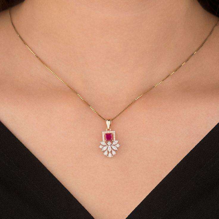 สร้อยคอจี้เพชรทรงสี่เหลี่ยมสีทองทับทิมสุดหรู สร้อยคอทองคำทรงหยดน้ำสำหรับผู้หญิง เครื่องประดับเพชรคลาสสิก