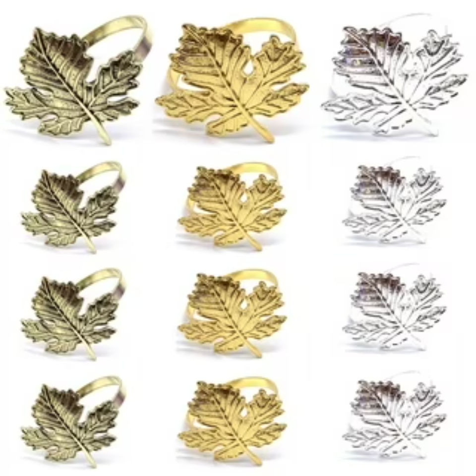 ห่วงใส่ผ้าเช็ดปากรูปใบไม้สีเงินสีทองหรูหราสำหรับตกแต่งโลหะแบบทันสมัยห่วงผ้าเช็ดปากรูปใบไม้สีทองและสีเงินสุดหรู