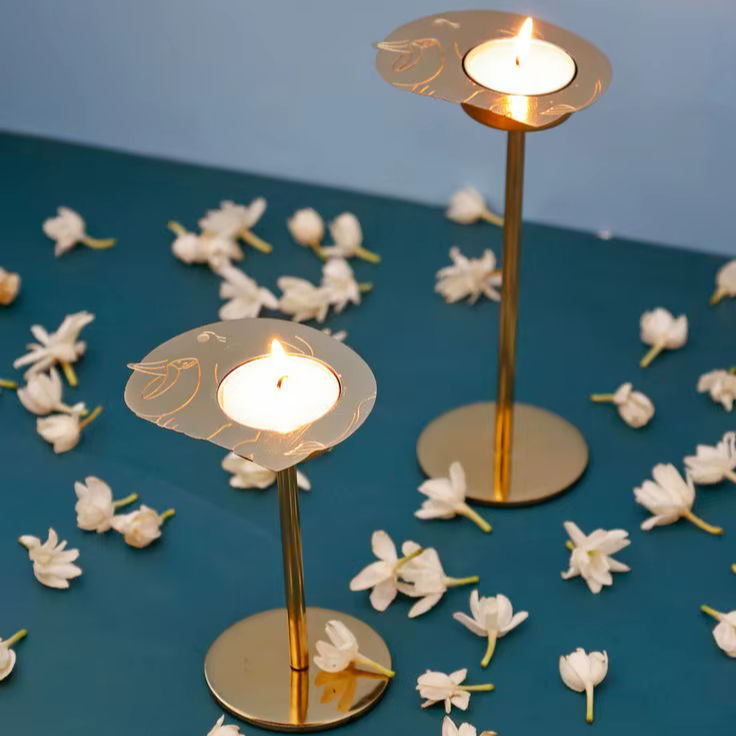 Elegant Gold Tealight Candle Holders with Stand Set of 2 Decorative Metal Candle Stand Modern Wedding Home Table Decor