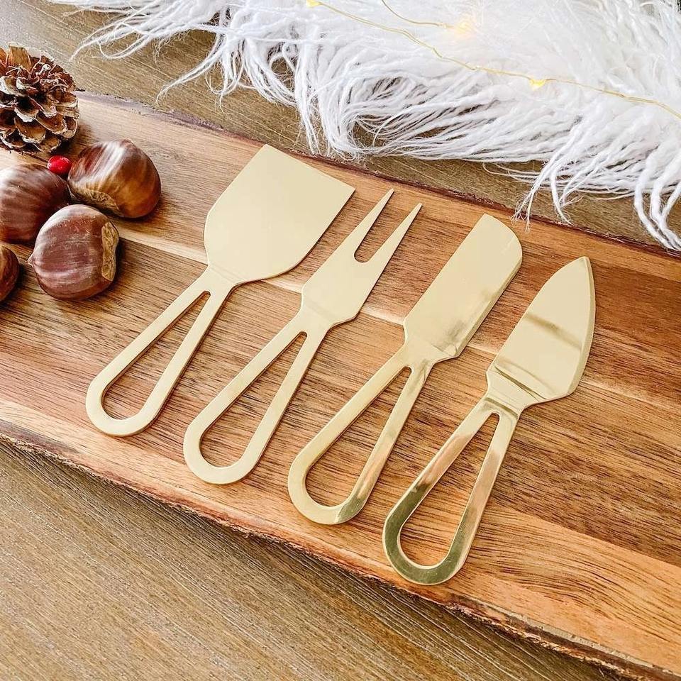 ชุดมีดชีสโลหะสีทองหรูหรา ด้ามไม้ ชุดมีดเสิร์ฟชีสสวยงามสำหรับบนโต๊ะอาหาร