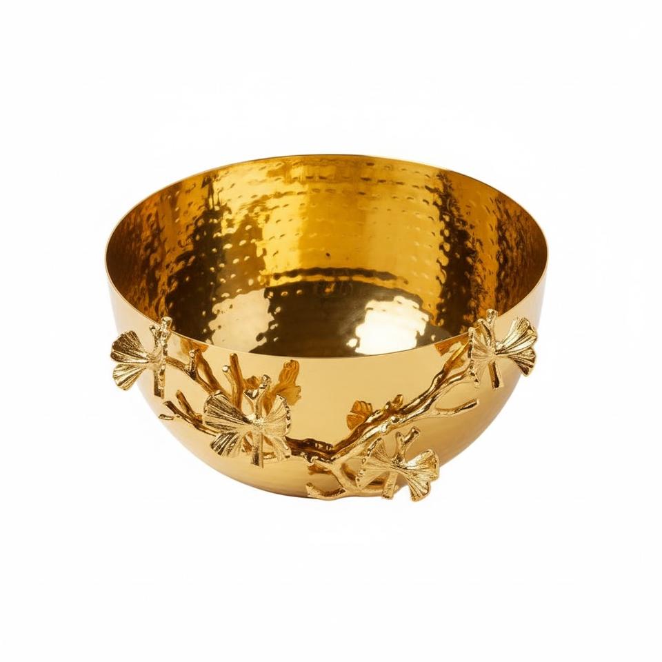 Elegant Golden Aluminum Eco-Friendly Modern Serving Bowl Hammered Texture Metal Designer Dinnerware Luxury Home Decor Gift Item