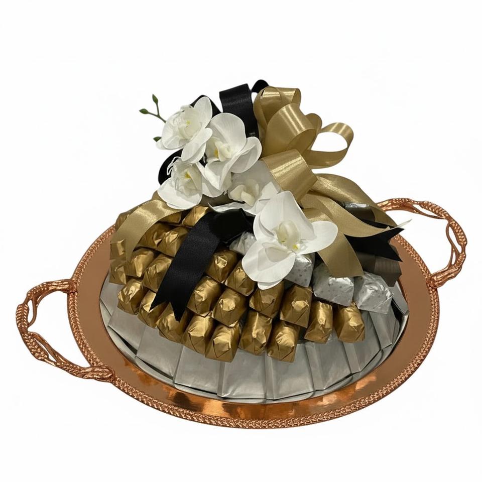 ถาดใส่ขนมช็อกโกแลตโลหะสีทองและสีบรอนซ์ ดีไซน์หรูหรา เหมาะสำหรับโอกาสพิเศษและงานต่างๆ ในราคาที่เข้าถึงได้