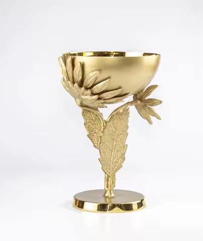 ชามตกแต่งสีทองหรูหราพร้อมลายเถาใบไม้เหมาะสำหรับการตกแต่งบ้านที่หรูหราและวางกลางโต๊ะรื่นเริง
