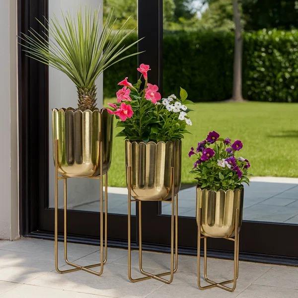 กระถางโลหะสีทองหรูหราพร้อมเสน่ห์ที่ทันสมัยสำหรับการตกแต่งในร่มและกลางแจ้งที่มีสไตล์คุณภาพระดับพรีเมียม