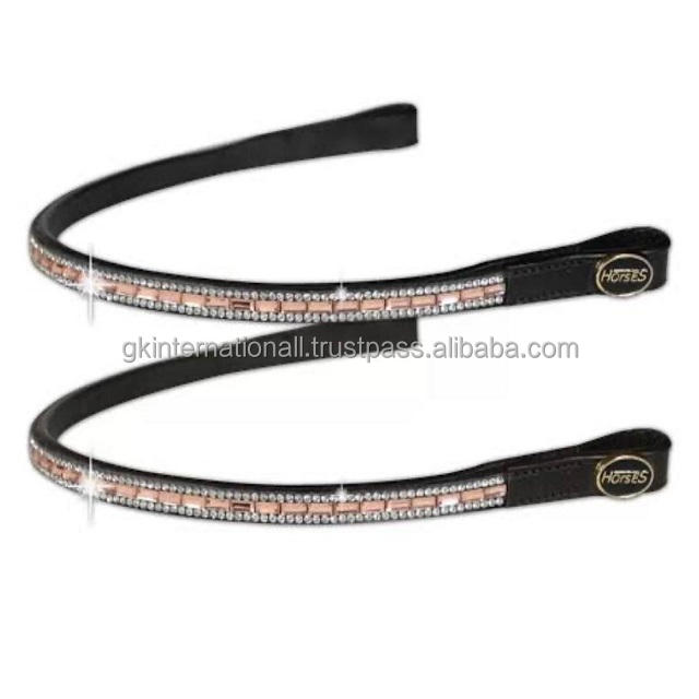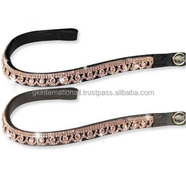 ที่คาดผมหนังม้าประดับพลอยเทียมขนาดใหญ่ประดับด้วยคริสตัลสีทองหรูหราขนาดเล็กมีสายรัดโลโก้ตามสั่ง