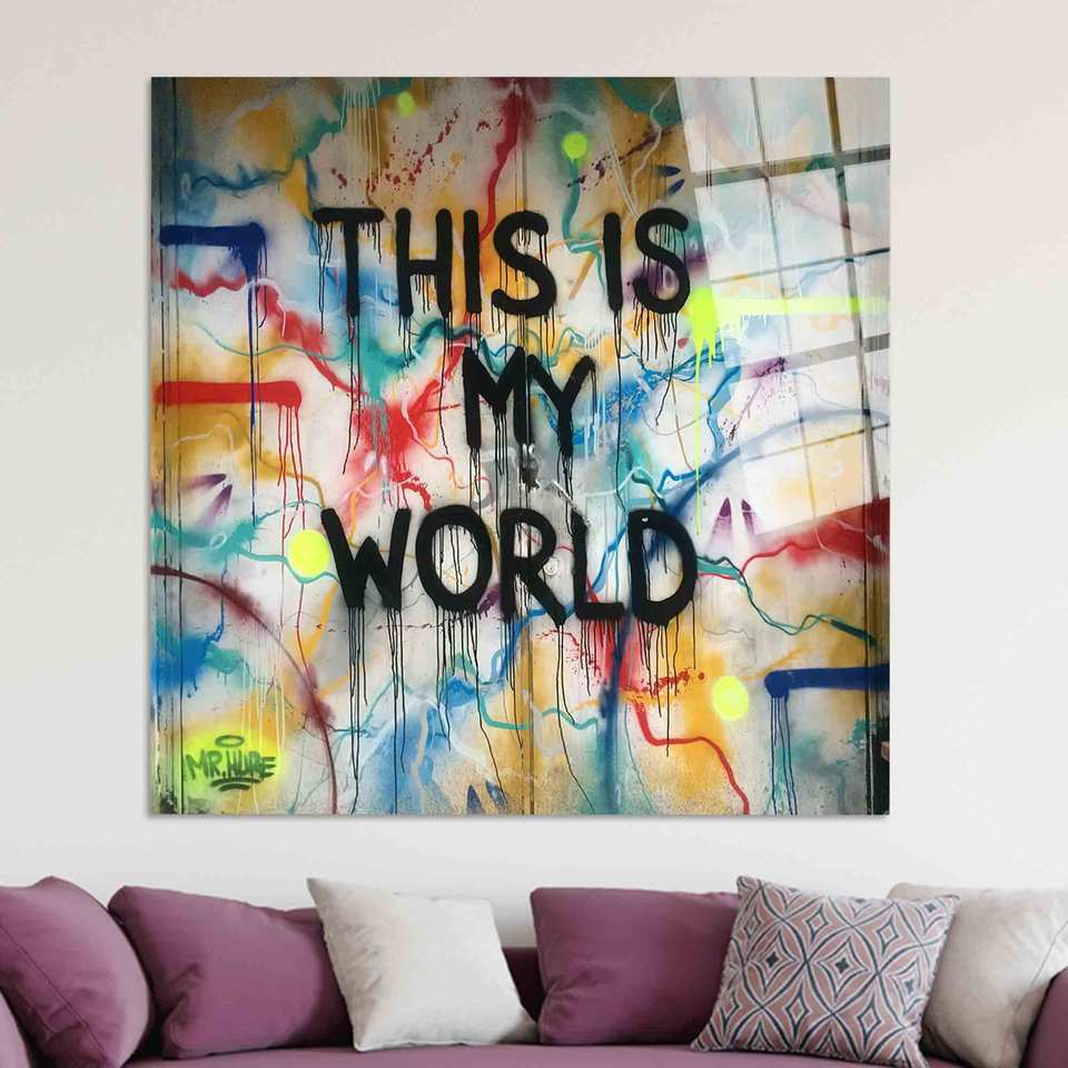 ศิลปะกราฟฟิตีติดผนังสุดหรู: "นี่คือโลกของฉัน" โปสเตอร์ผ้าใบพิมพ์ลาย, ศิลปะบนกระจกนิรภัย