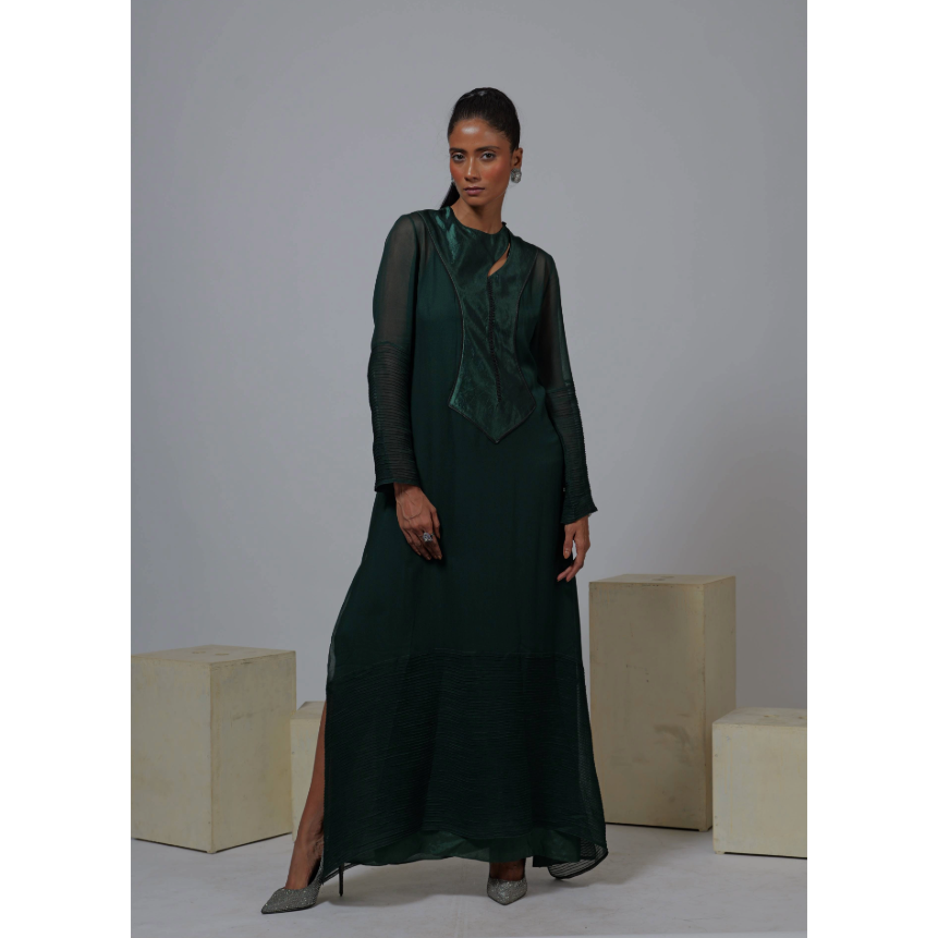 ชุดราตรีสีเขียวหรูหรา แขนซีทรู ยาว สำหรับผู้หญิง ราคาดีที่สุด