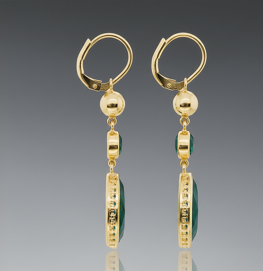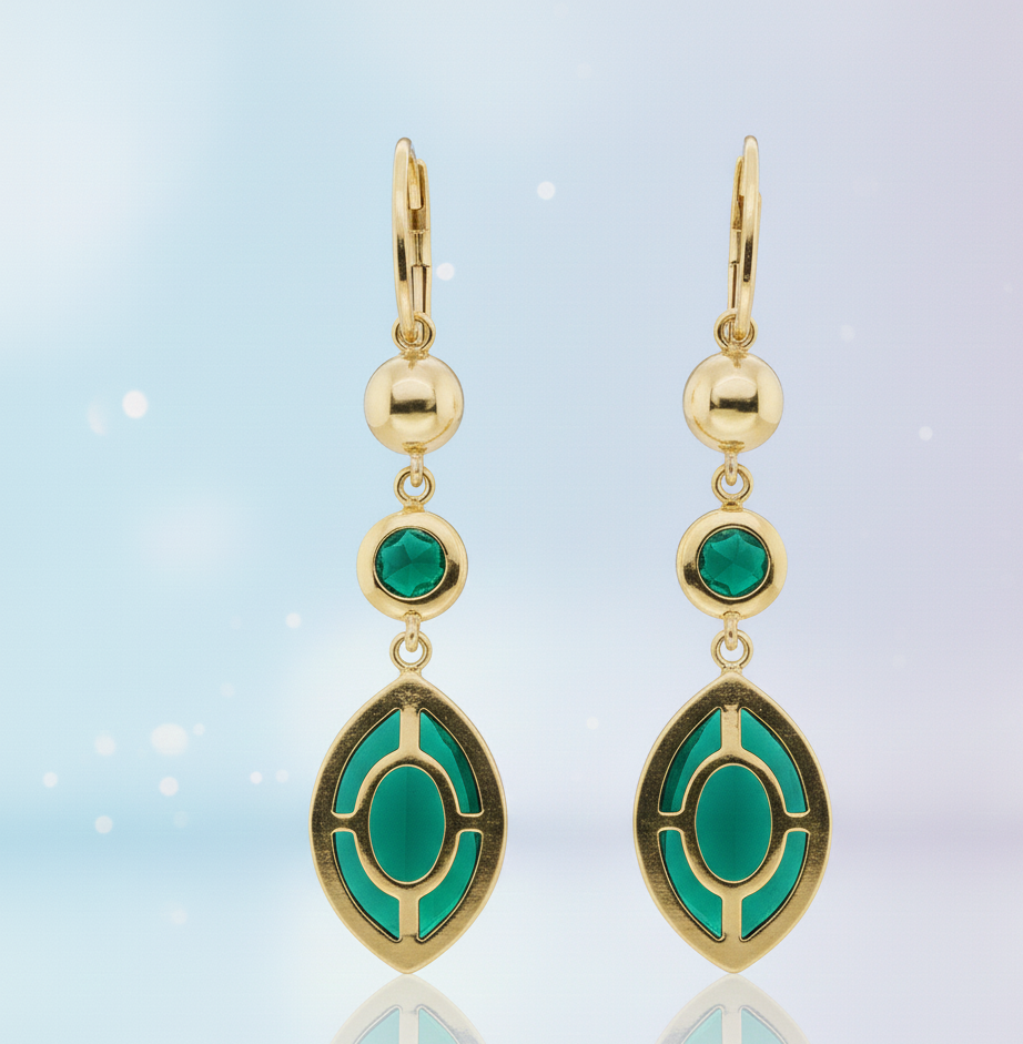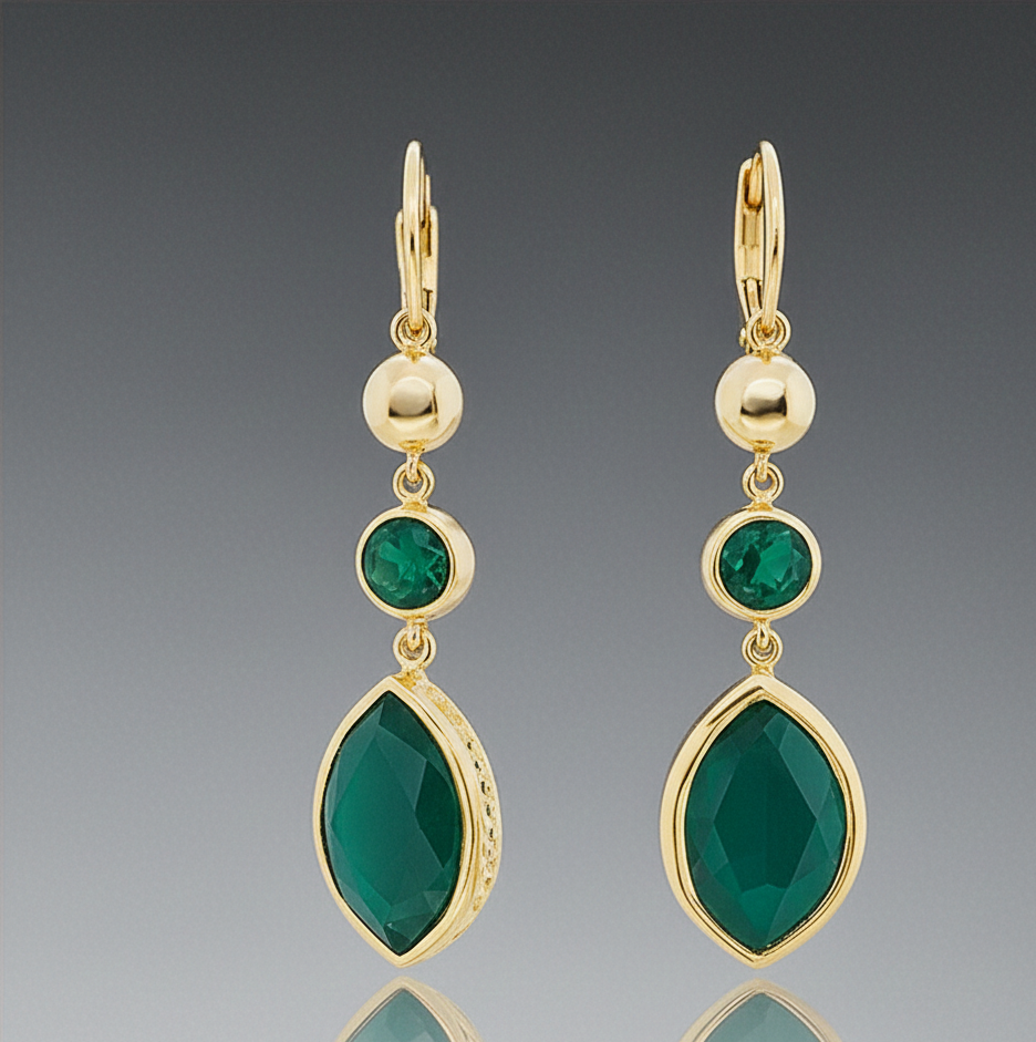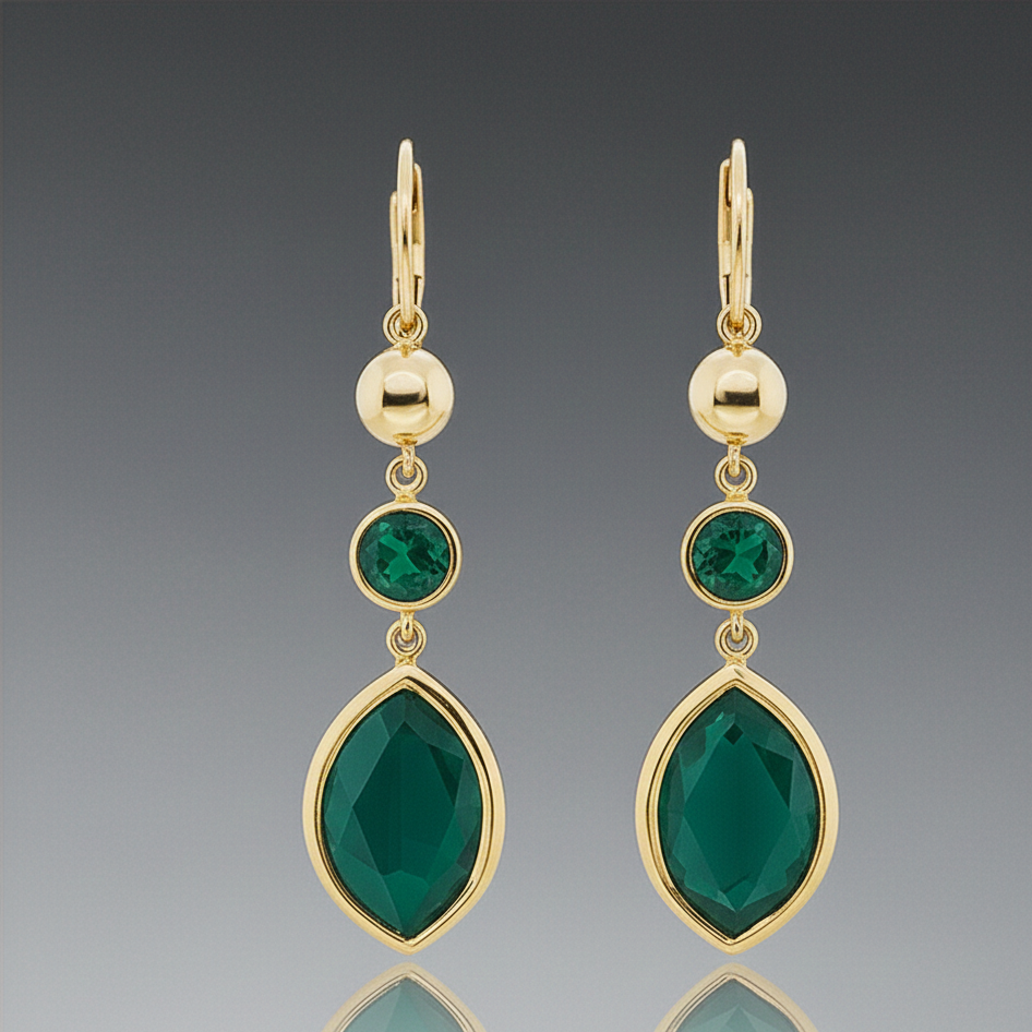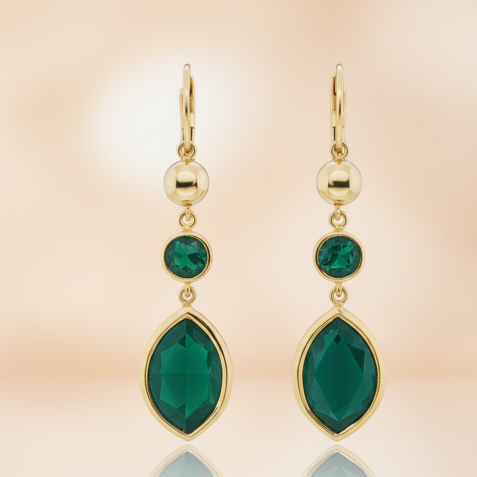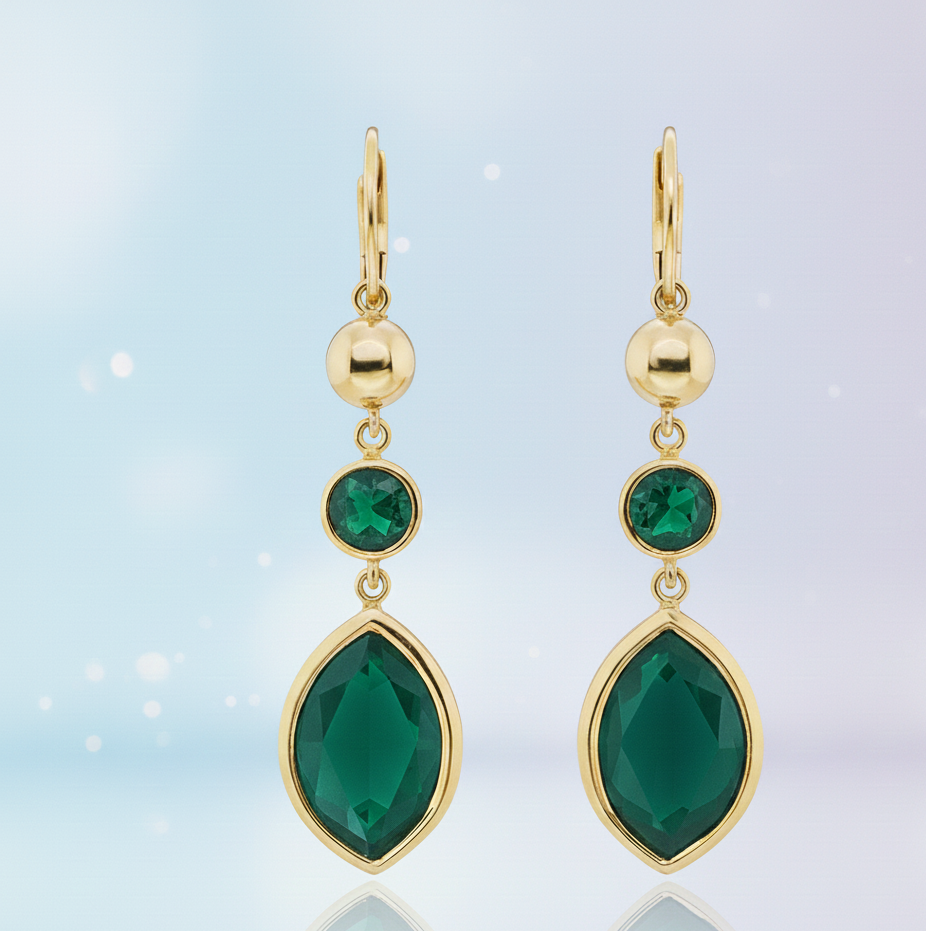 ต่างหูพลอยทรงกลมและทรงมาร์ควิสสีเขียวไฮโดรที่สง่างาม | ต่างหูเงินแท้ 925 ชุบทอง 18K แบบห้อย เหมาะสำหรับงานแต่งงาน