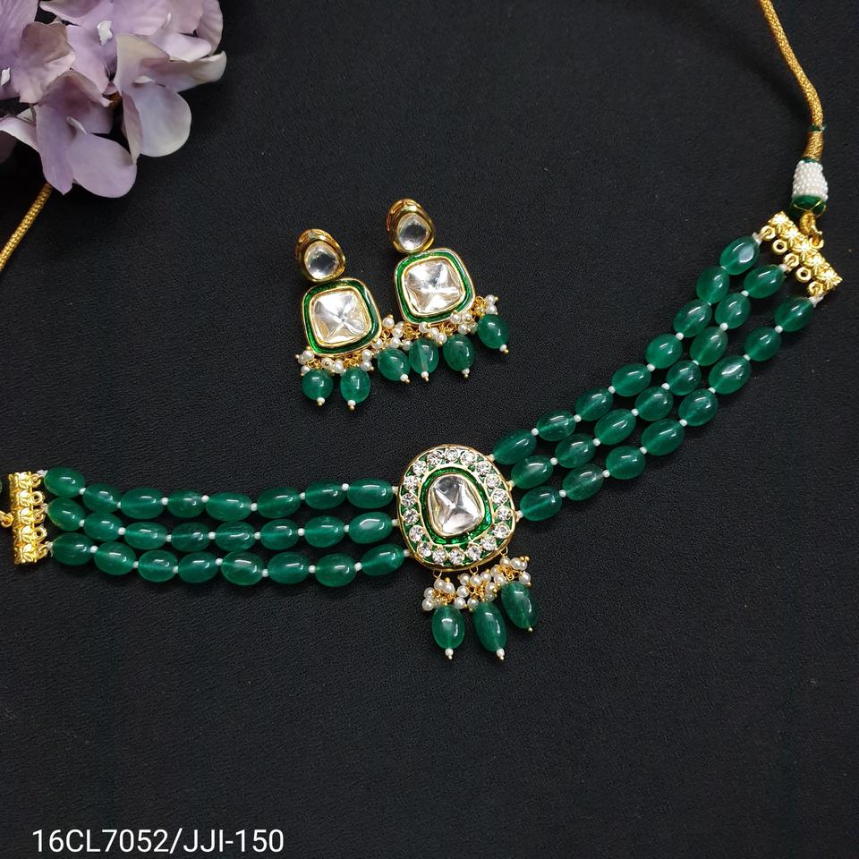 ชุดโช้คเกอร์ลายจุด Kundan สีเขียวสุดหรูพร้อมต่างหูและสร้อยคอทำด้วยมือชุดเครื่องประดับแฟชั่นสำหรับผู้หญิง