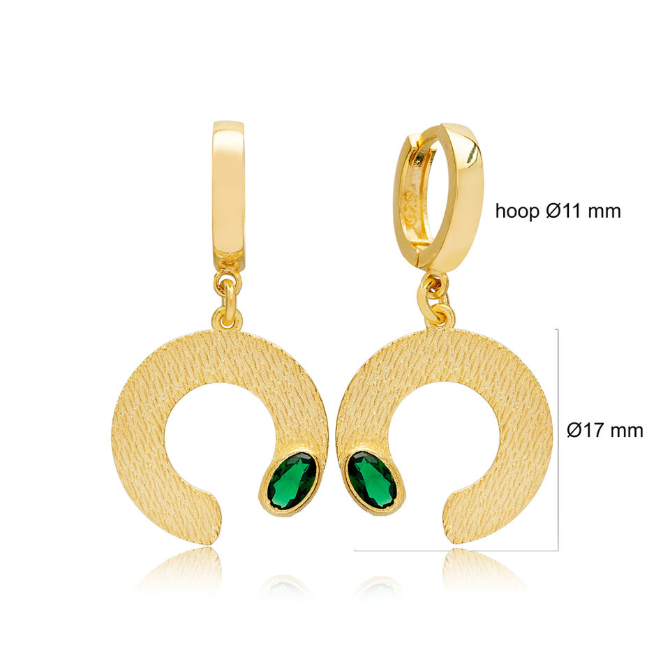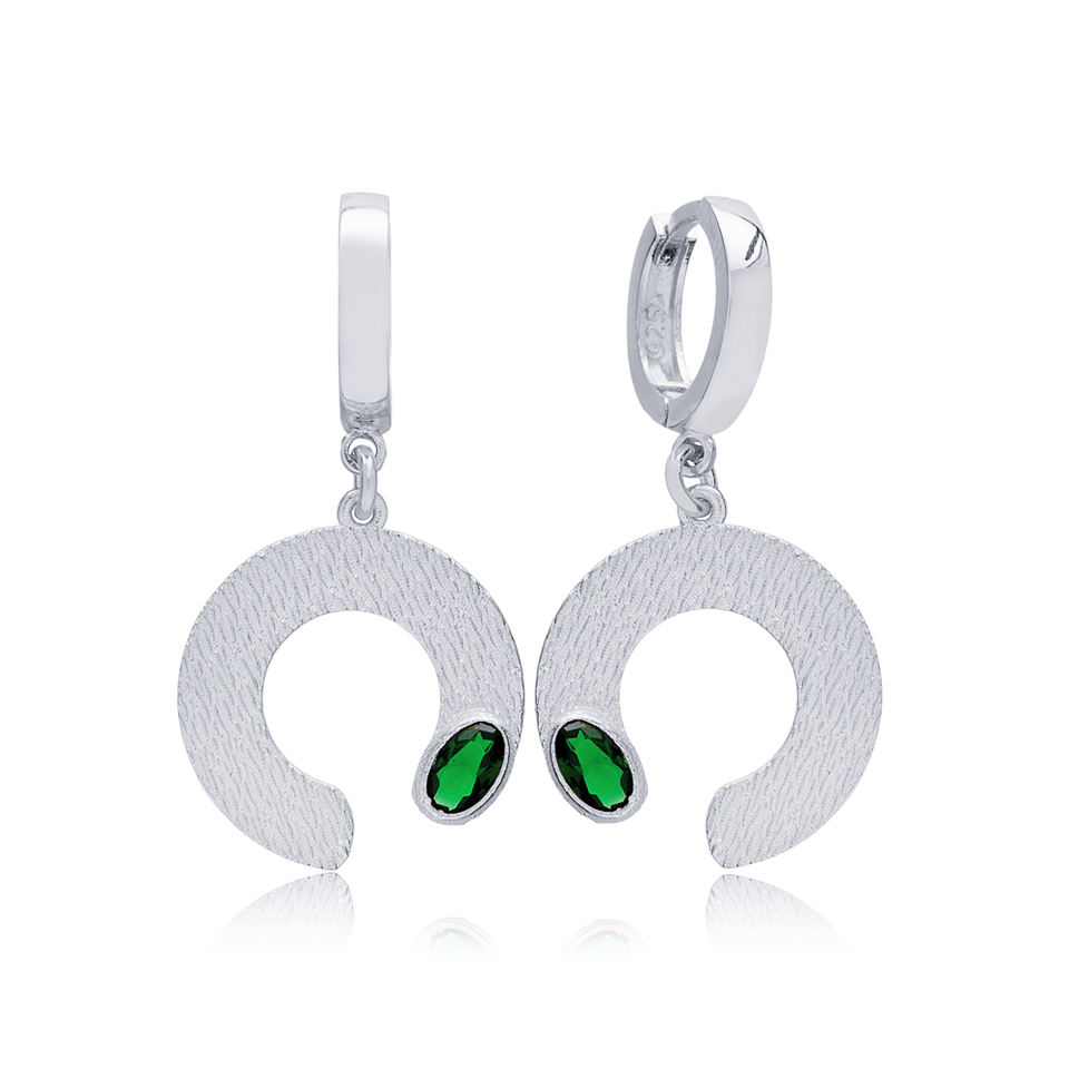 สง่างามครึ่งวงกลมรูปร่างมรกตหินห้อยต่างหู925เงินสเตอร์ลิงพื้นผิวเครื่องประดับ