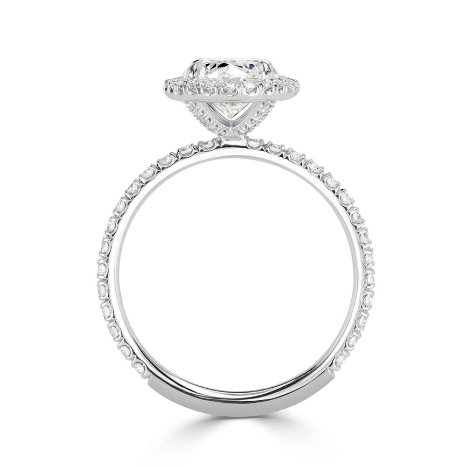 แหวนเพชรทรงไข่ ประดับเพชรรอบวงแบบครึ่งวง ตัวเรือนทองคำขาว