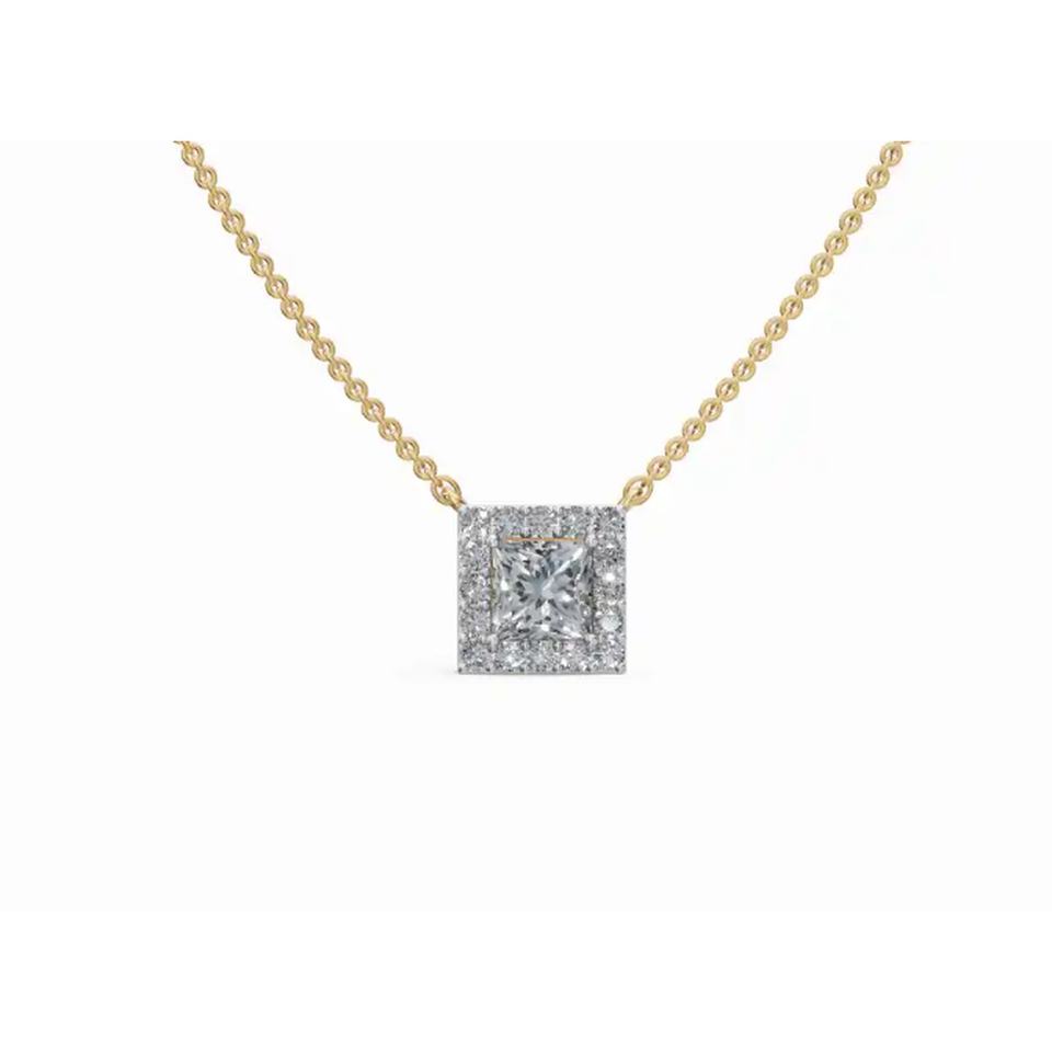 จี้เพชรเลี้ยงในห้องปฏิบัติการทรงเจ้าหญิง ดีไซน์หรูหราสง่างาม น้ำหนัก 1.031 กะรัต ทอง 9KT 14KT 18KT เครื่องประดับทองคำ ขายส่ง OEM B2B ส่งออก