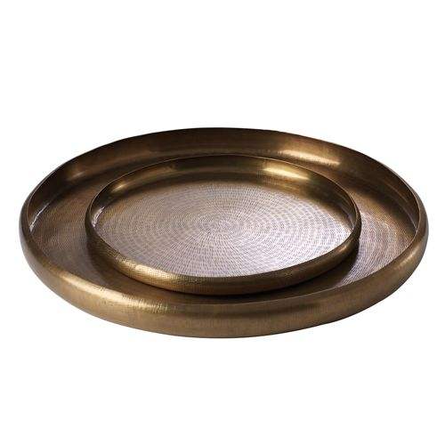ถาดเสิร์ฟทองเหลืองลายตอกแบบหรูหรา พร้อมลวดลายอินเดียดั้งเดิม สำหรับโรงแรม ร้านอาหาร งานจัดเลี้ยง และตกแต่งโต๊ะในงานเทศกาล