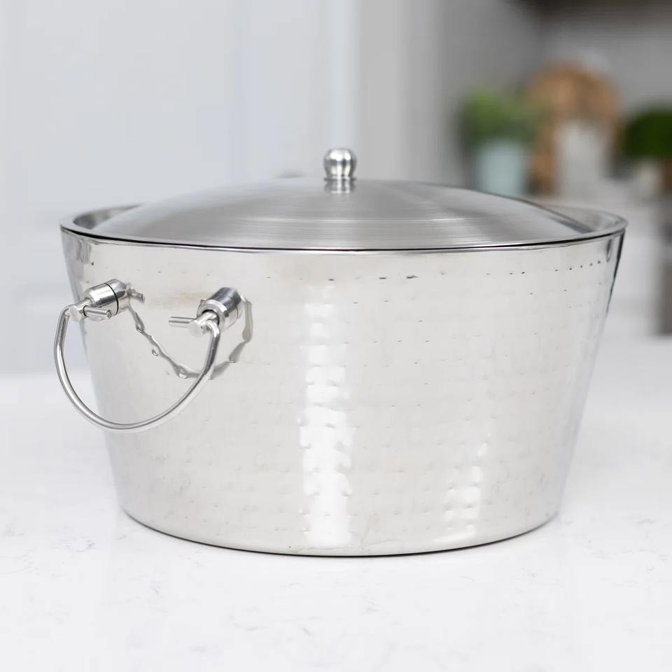 อ่างน้ำแข็งสแตนเลสแบบตอกลายอย่างหรูหราสำหรับตกแต่งบาร์ในบ้านสุดหรู ความจุ 2 แกลลอน ทนทาน ใช้สำหรับแช่เครื่องดื่ม