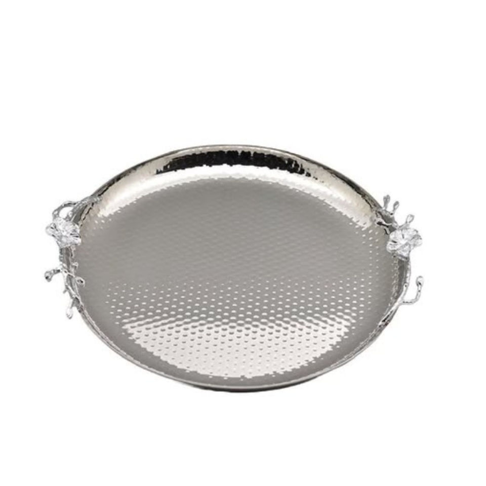 ถาดเสิร์ฟอาหารสแตนเลสพร้อมที่จับแกะสลักรูปนกสุดหรูถาดสำหรับตกแต่งโต๊ะถาดเสิร์ฟอาหาร