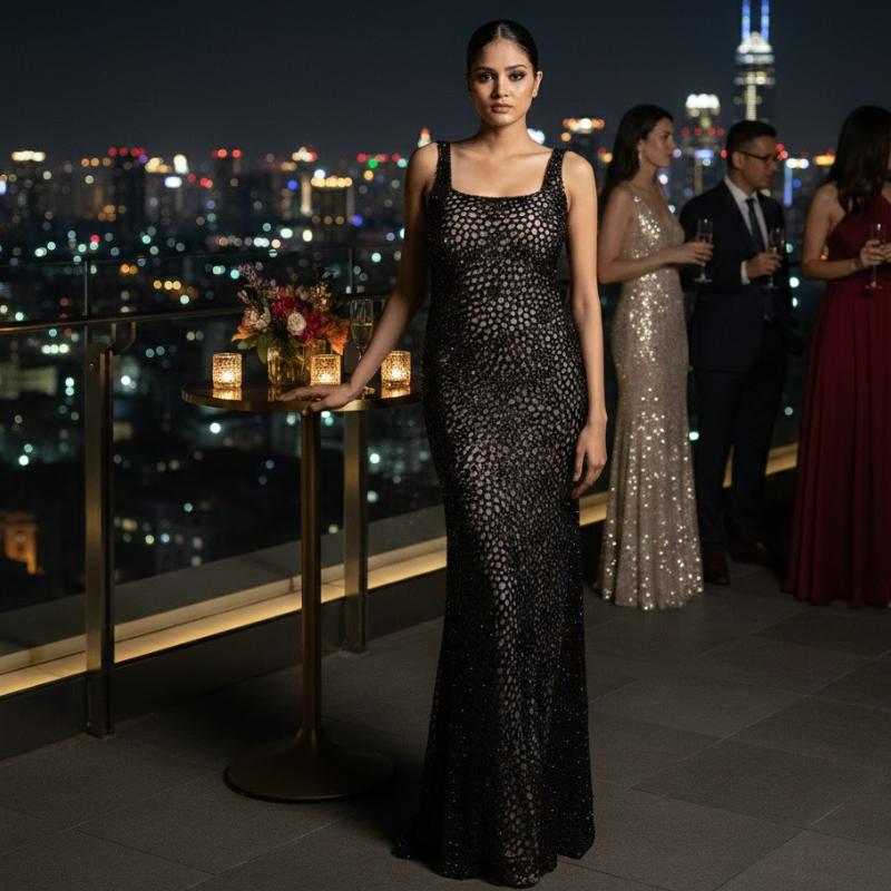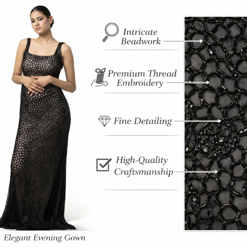 ชุดราตรีประดับลูกปัดทำมือสุดหรูสำหรับผู้หญิง | ชุดราตรีหรูหราสำหรับงานปาร์ตี้ พรมแดง และโอกาสพิเศษ ผลิตในอินเดีย