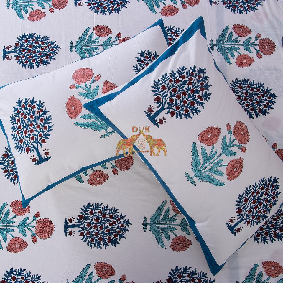 Elegant Hand Block Cotton Bedsheet Set Premium Quality Floral Print Bedding for a Cozy Stylish and Luxurious Bedroom Ambiance
