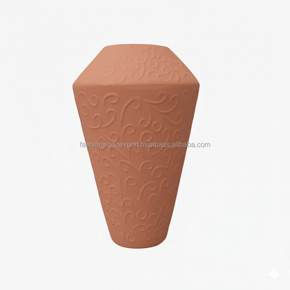 แจกันดินเผาแกะสลักด้วยมือหรูหราพร้อมลวดลายดอกไม้สีขาวสลับซับซ้อนแจกันเครื่องปั้นดินเผาสำหรับการตกแต่งภายในบ้านแบบดั้งเดิม