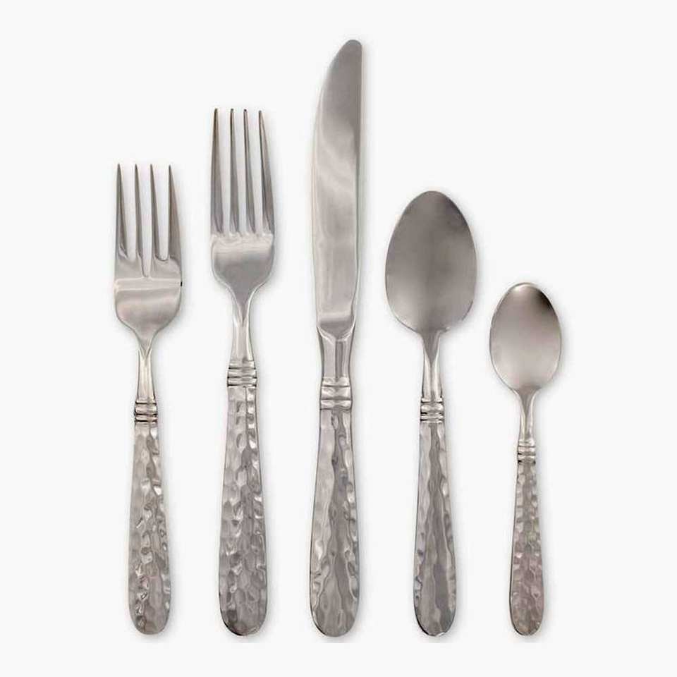 Elegant Hand-Forged 5 Pcs Dinnerware Set in American Style with Embossed Hammered Handles Perfect for Special Occasions
