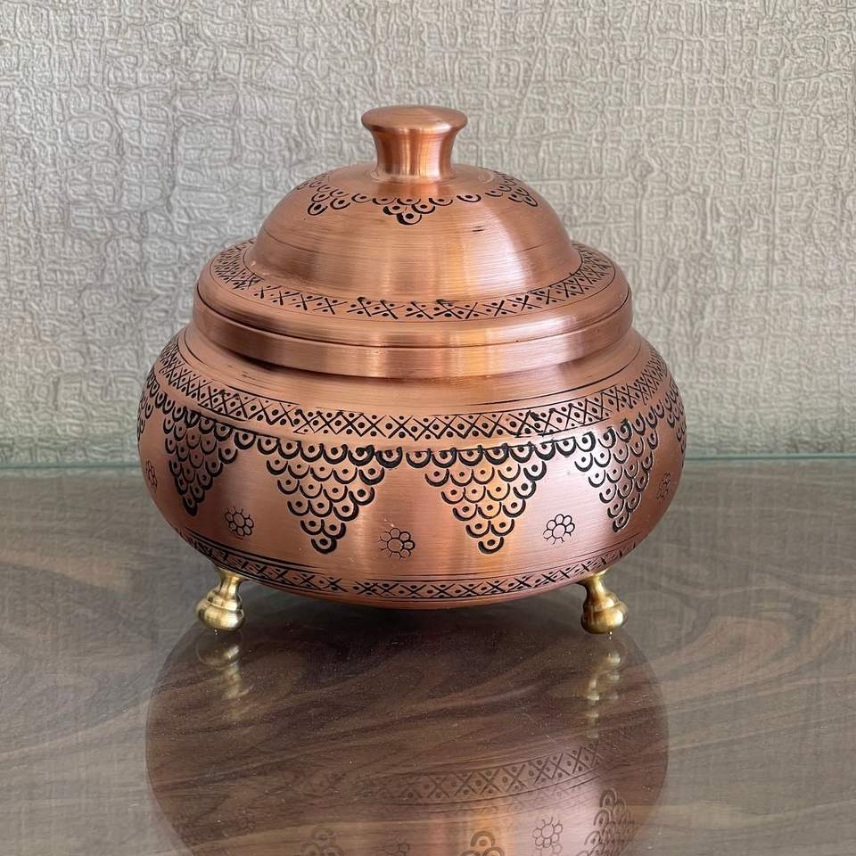 ฝาหม้อทองแดงตกแต่งทำมืออย่างหรูหรา ดีไซน์สลักลาย ภาชนะใส่ขนมหรูหรา กล่องเก็บเครื่องประดับ ของตกแต่งบ้าน