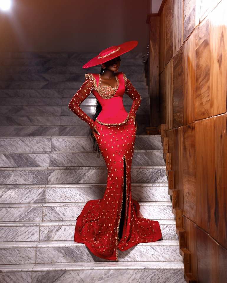 ชุดแต่งงานโซมาลีแบบยาวถึงพื้น ผ้าลูกไม้สีลูกกวาดผสมผ้าไหม คอวี ดีไซน์หรูหรา พร้อมบราในตัว ป้องกันการยับ สำหรับงานนิกะห์