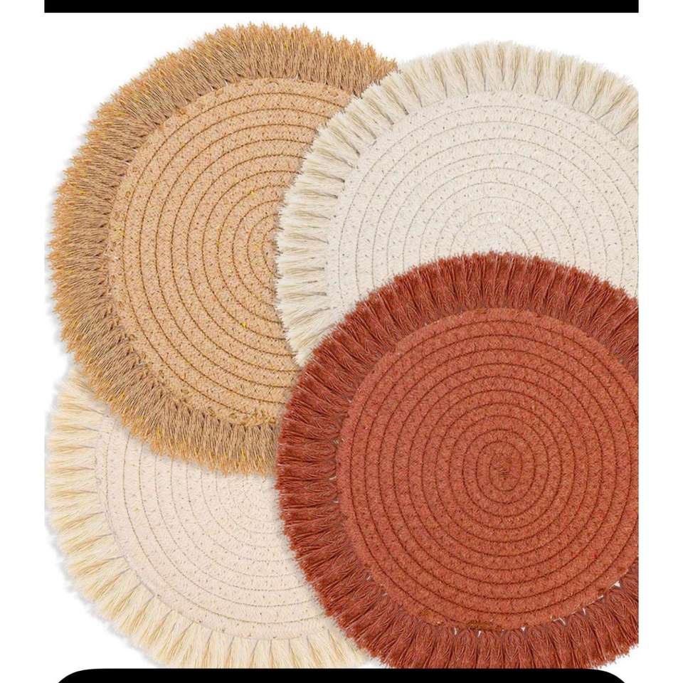 แผ่นรองจานทำมือจากปอกระเจาอย่างดี เป็นมิตรกับสิ่งแวดล้อม ผลิตจากผ้าฝ้ายดอริ เหมาะสำหรับใช้ในบ้าน ร้านกาแฟ ร้านอาหาร และโรงแรม