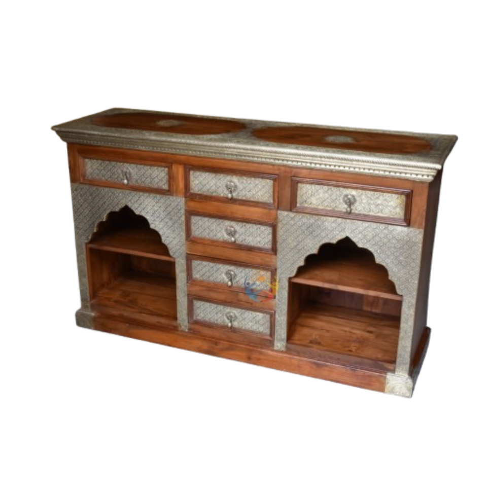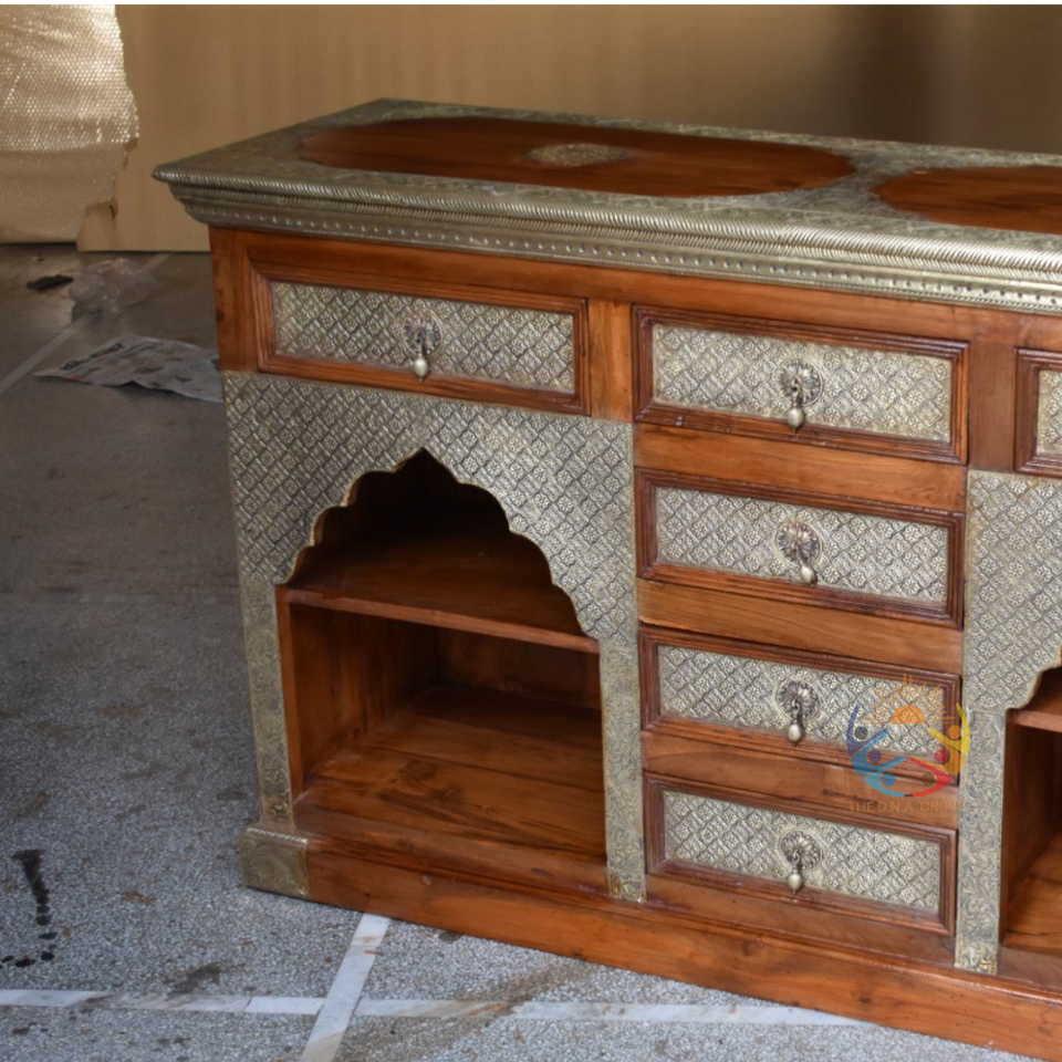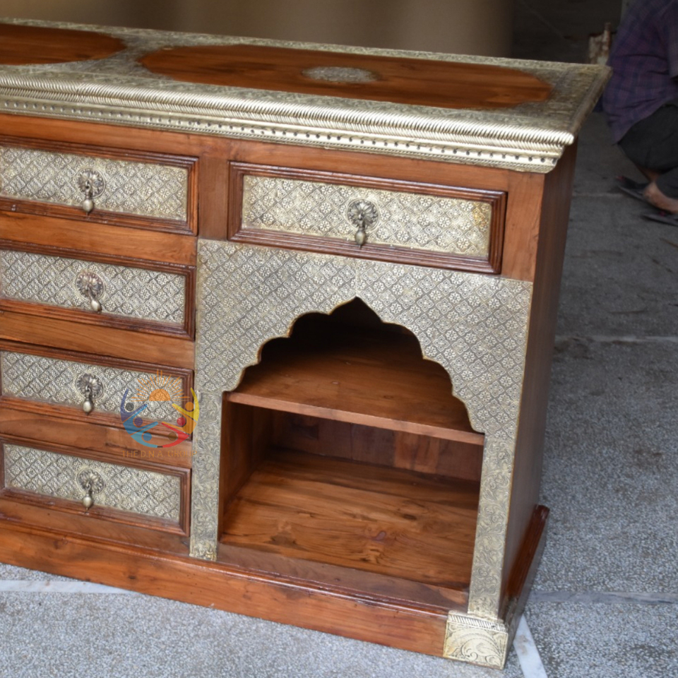 ตู้คอนโซลทำจากไม้หรูหราทำด้วยมือทำจากทองเหลืองมีรายละเอียดตู้เก็บของ