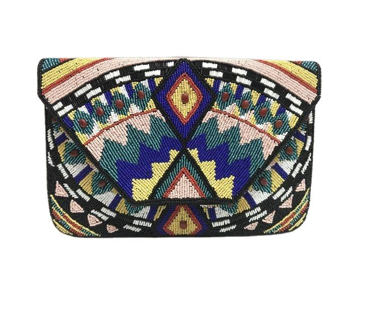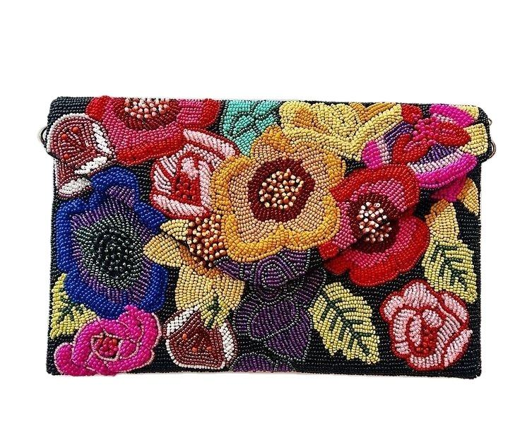 กระเป๋าสะพายไหล่ปักลายดอกไม้ประดับด้วยลูกปัดรูปนกทำมือสุดหรูมีสไตล์งานหัตถกรรม MD