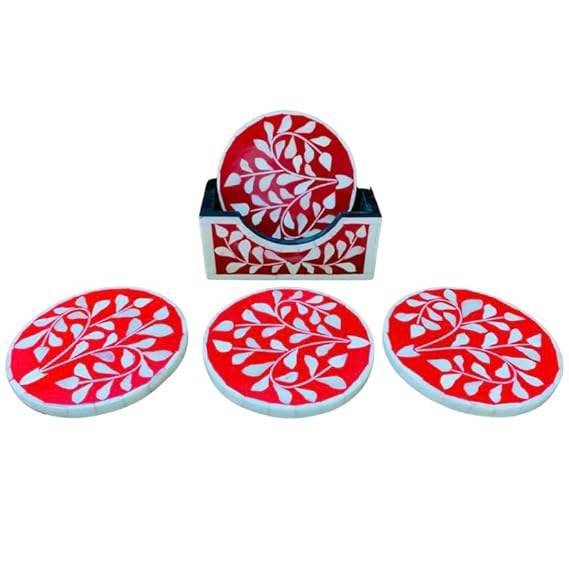 ที่รองแก้ววอลนัทอินเดียแบบฝังกระดูกทำมือหรูหราพร้อมที่จับลายดอกไม้สำหรับตกแต่งบ้าน
