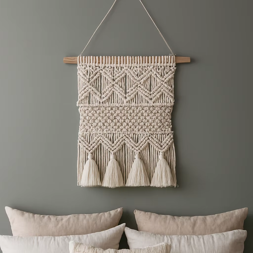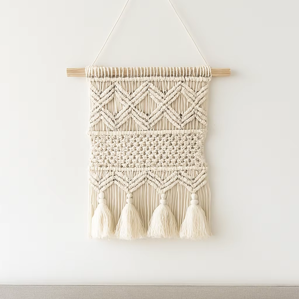 ที่แขวนผนังลายแมคคราเม่ทำด้วยมือหรูหราสไตล์สแกนดิเนเวียนตะวันตกเฉียงใต้สไตล์ฟิวชั่นยังคงรูปแบบชีวิตห้องนั่งเล่นซักได้
