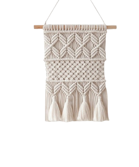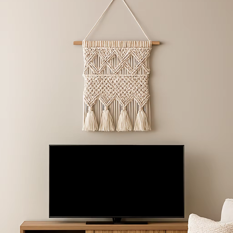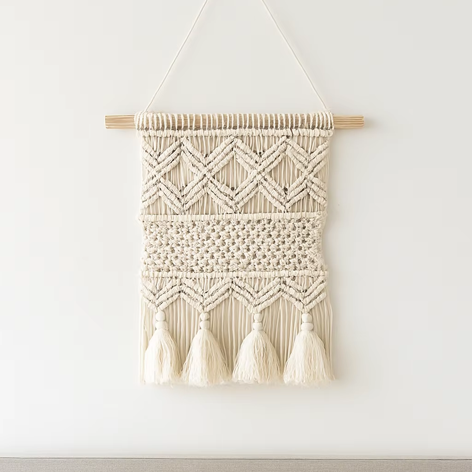 ที่แขวนผนังลายแมคคราเม่ทำด้วยมือหรูหราสไตล์สแกนดิเนเวียนตะวันตกเฉียงใต้สไตล์ฟิวชั่นยังคงรูปแบบชีวิตห้องนั่งเล่นซักได้