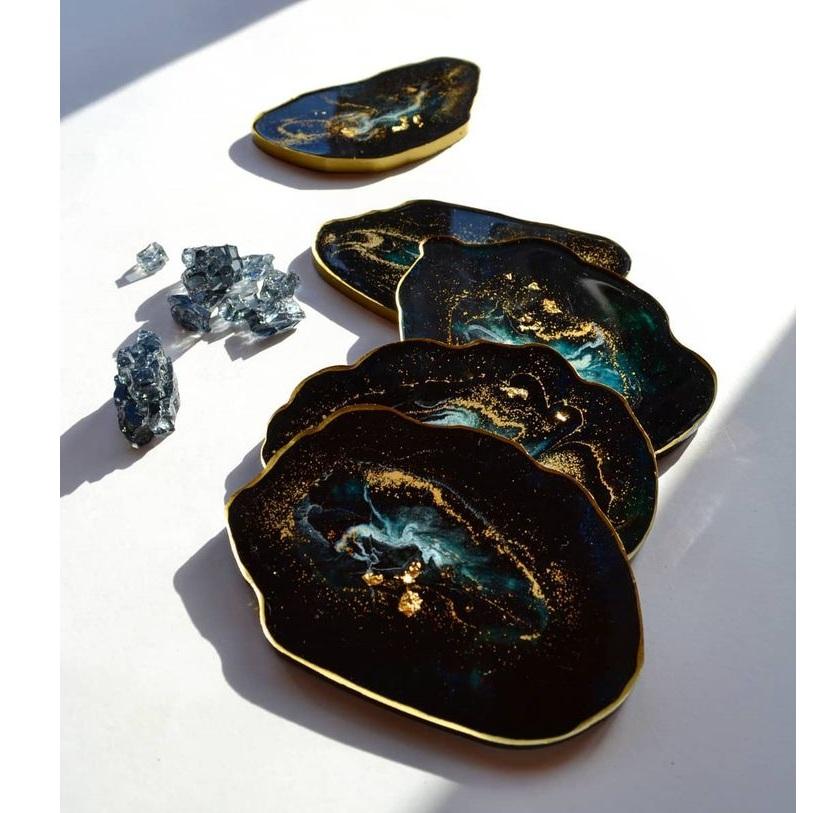 แผ่นรองแก้วเรซิ่นทำมือสุดหรู พร้อมแผ่นรองแก้วอีพ็อกซี่ลายทองคำเปลว สำหรับตกแต่ง ช่วงคริสต์มาส