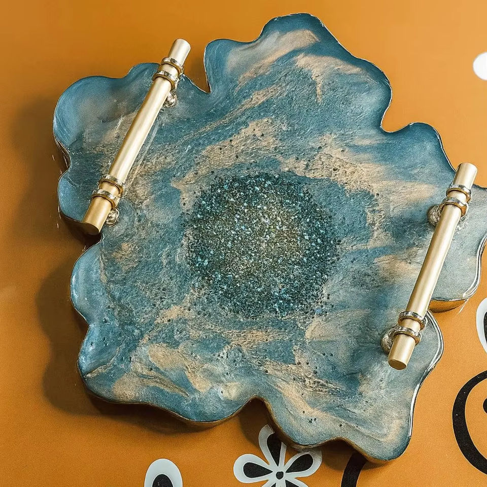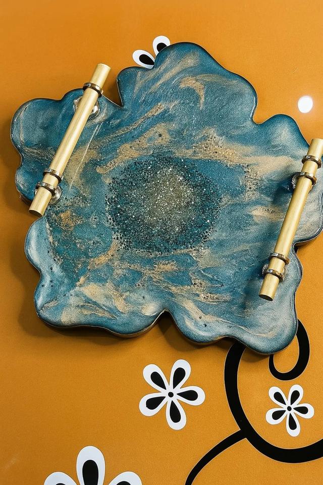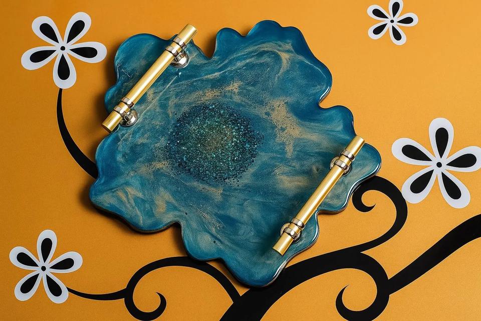 ถาดรองเรซินลายดอกไม้ทำด้วยมือปรับแต่งได้หรูหราตรงกลางโต๊ะสำหรับรับประทานอาหารโต๊ะกาแฟอีพอกซีเรซินทนทาน