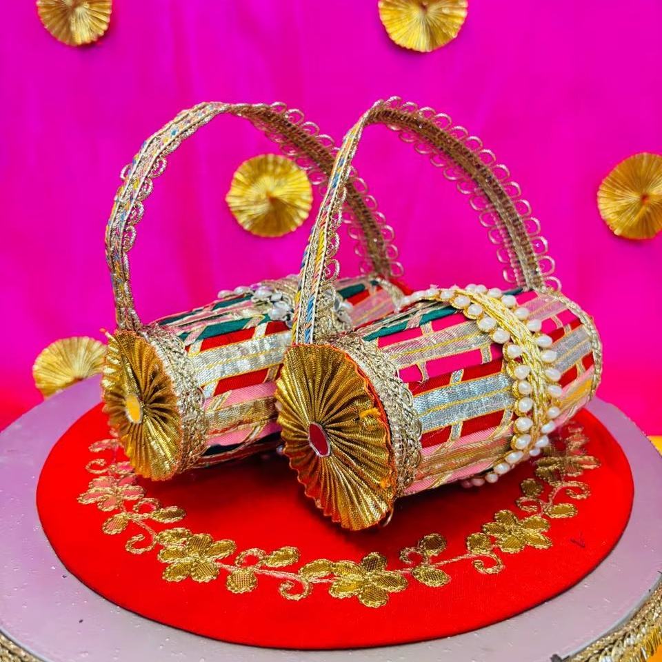 ชุดตะกร้าของขวัญงานเทศกาลทำมือสุดหรู ตกแต่งสไตล์อินเดียดั้งเดิม สำหรับงานแต่งงาน ฮัลดี เมเฮนดี และงานเลี้ยงฉลองทารก
