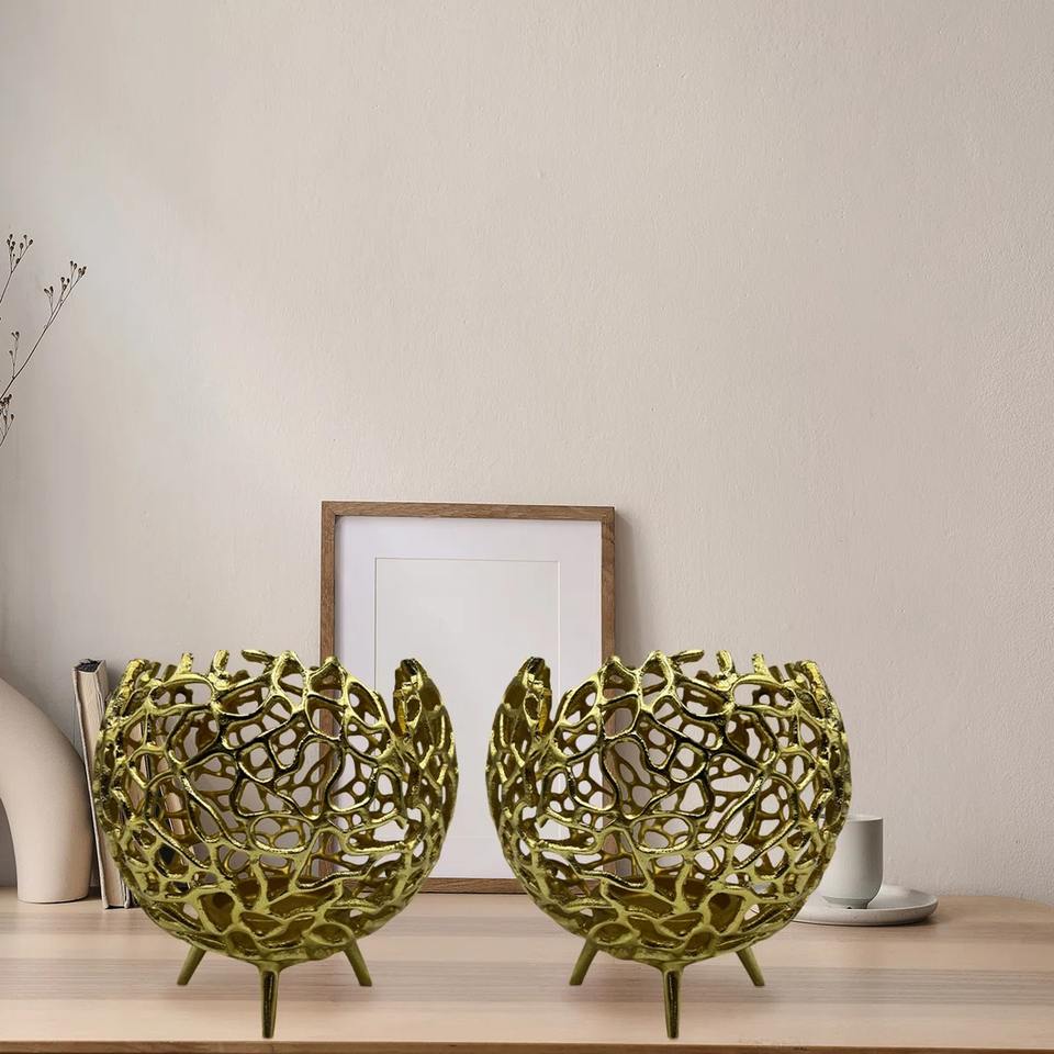ชุดที่ยึดโลหะสองชิ้นทำด้วยมือมีลวดลายเป็นเส้นใยดีไซน์แบบแอบสแตรกคริสต์มาส