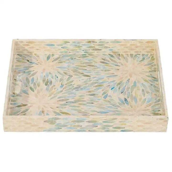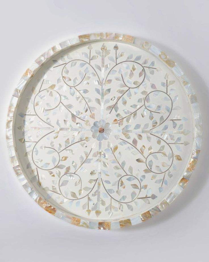 ถาดเสิร์ฟงานฝีมือประดับมุกอย่างหรูหรา พร้อมหูจับสลักลาย สำหรับชา กาแฟ อาหารเช้า หรืองานเลี้ยง ตกแต่งบ้าน