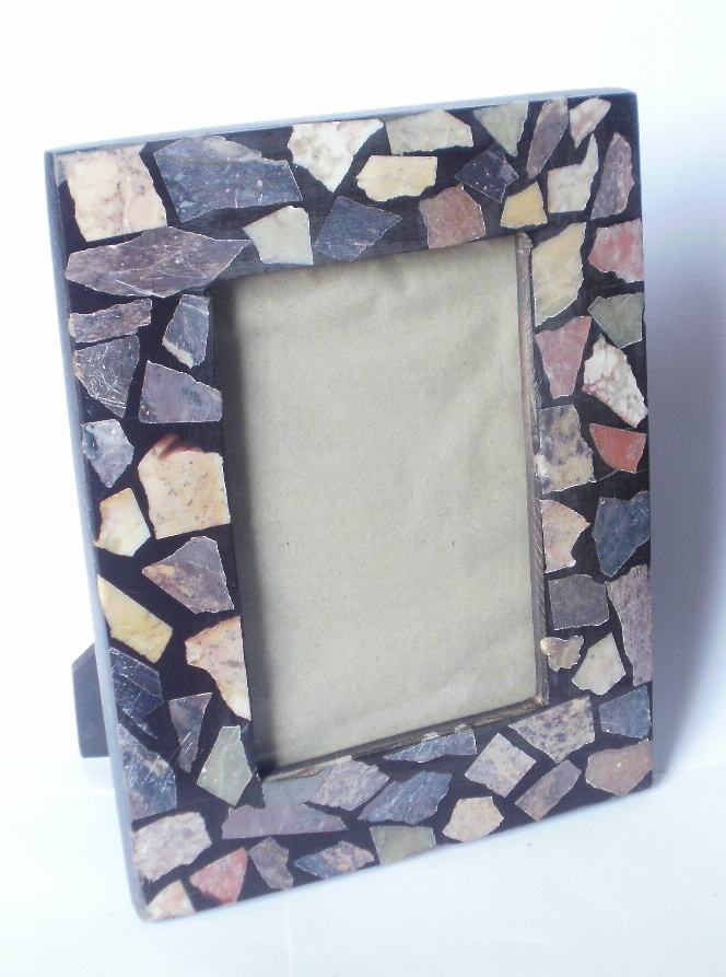 กรอบรูปทรงสี่เหลี่ยมผืนผ้าสีน้ำเงินขาวประดับด้วยเขาสัตว์และ MDF ทำมืออย่างประณีต ของตกแต่งบ้านสไตล์วินเทจสำหรับวางบนโต๊ะ