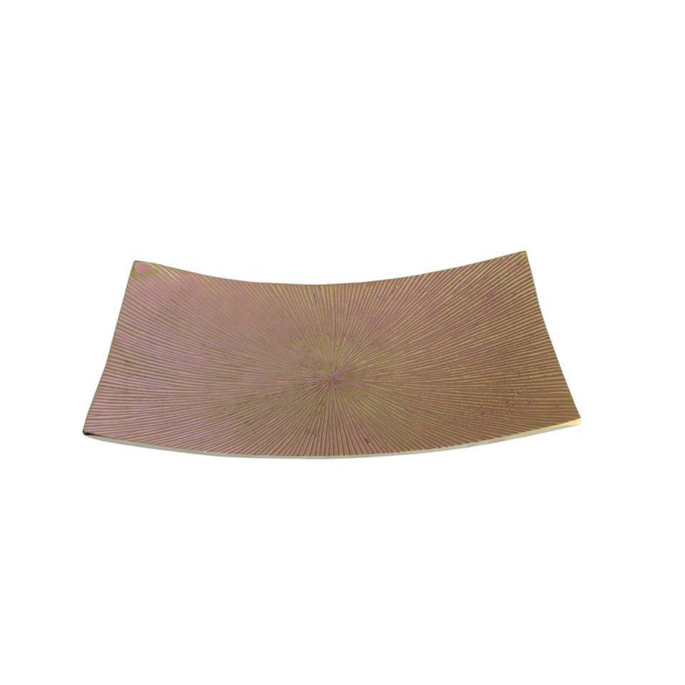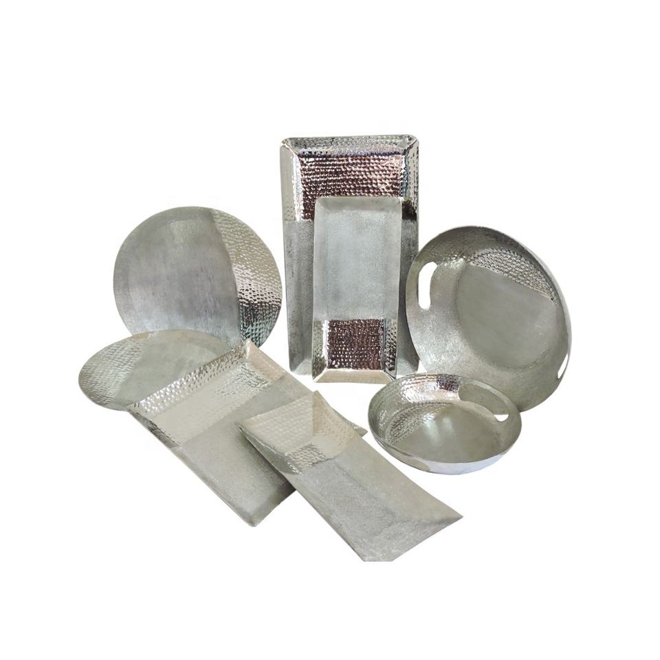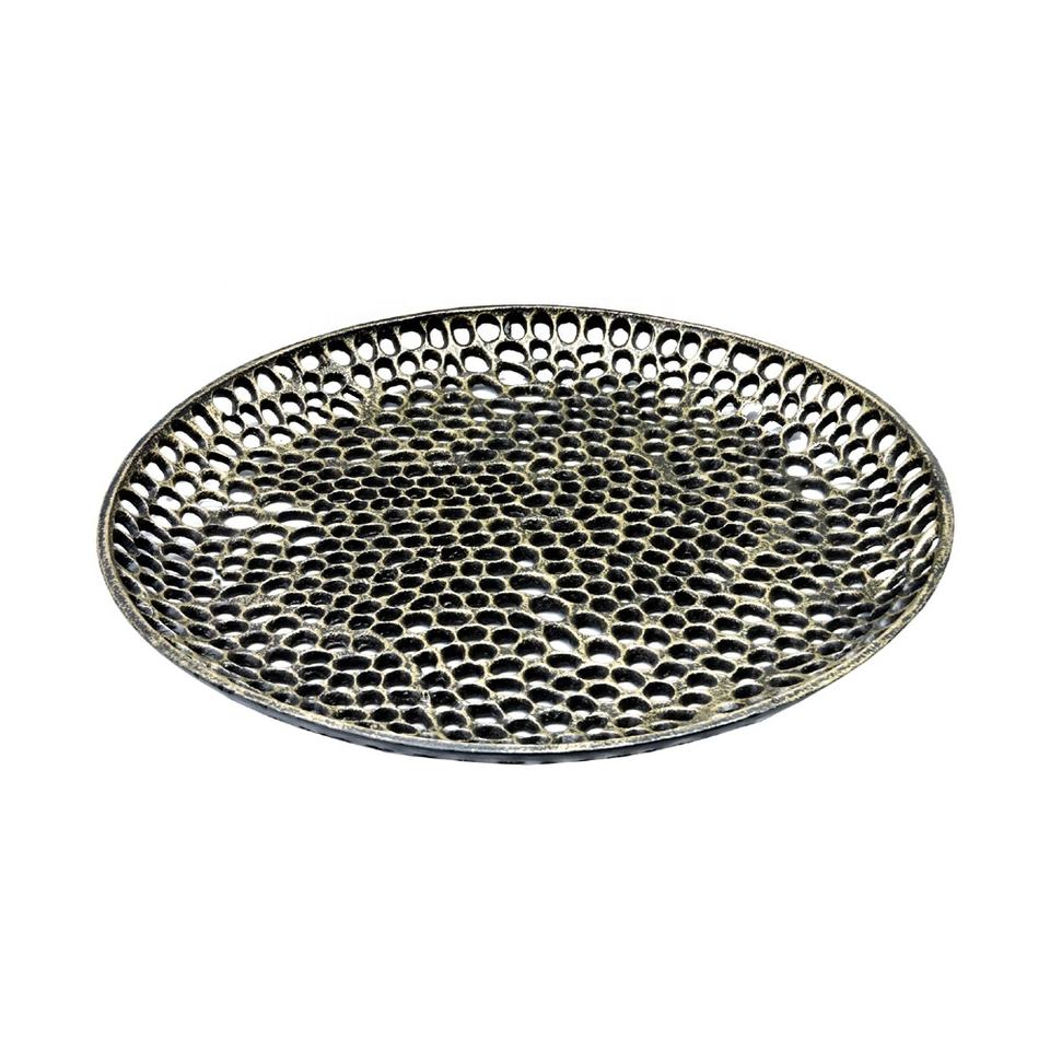 ถาดเสิร์ฟโลหะกลมทำด้วยมือสุดหรูทำจากทองเหลืองชุบทองอลูมิเนียมสำหรับบ้านร้านอาหารโรงแรมใช้ประจำวันพร้อมคุณสมบัติการตกแต่ง