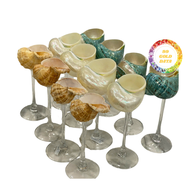 แก้วค็อกเทลเปลือกหอยหรูหราเป็นมิตรต่อสิ่งแวดล้อมทำด้วยมืออันหรูหราพร้อมฐานอะคริลิคทนทาน-ของตกแต่งชายฝั่งที่สมบูรณ์แบบและเป็นของขวัญให้เลือก