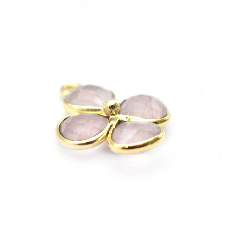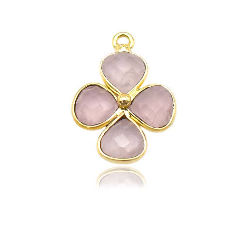 จี้รูปหัวใจรูปดอกกุหลาบควอทซ์หรูหรา-ดีไซน์ดอกไม้พร้อมจี้อัญมณีขนาดเล็กสี่ชิ้นเครื่องประดับชุดฝาชุบทอง