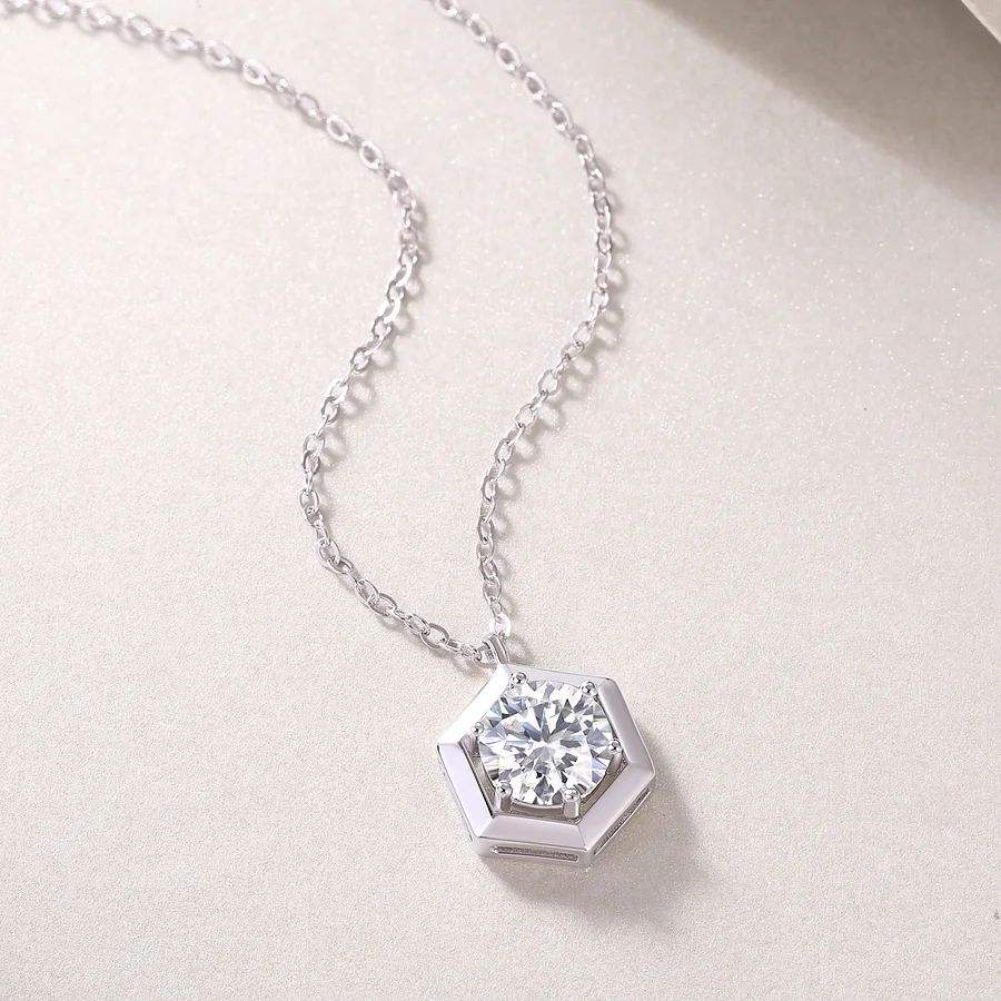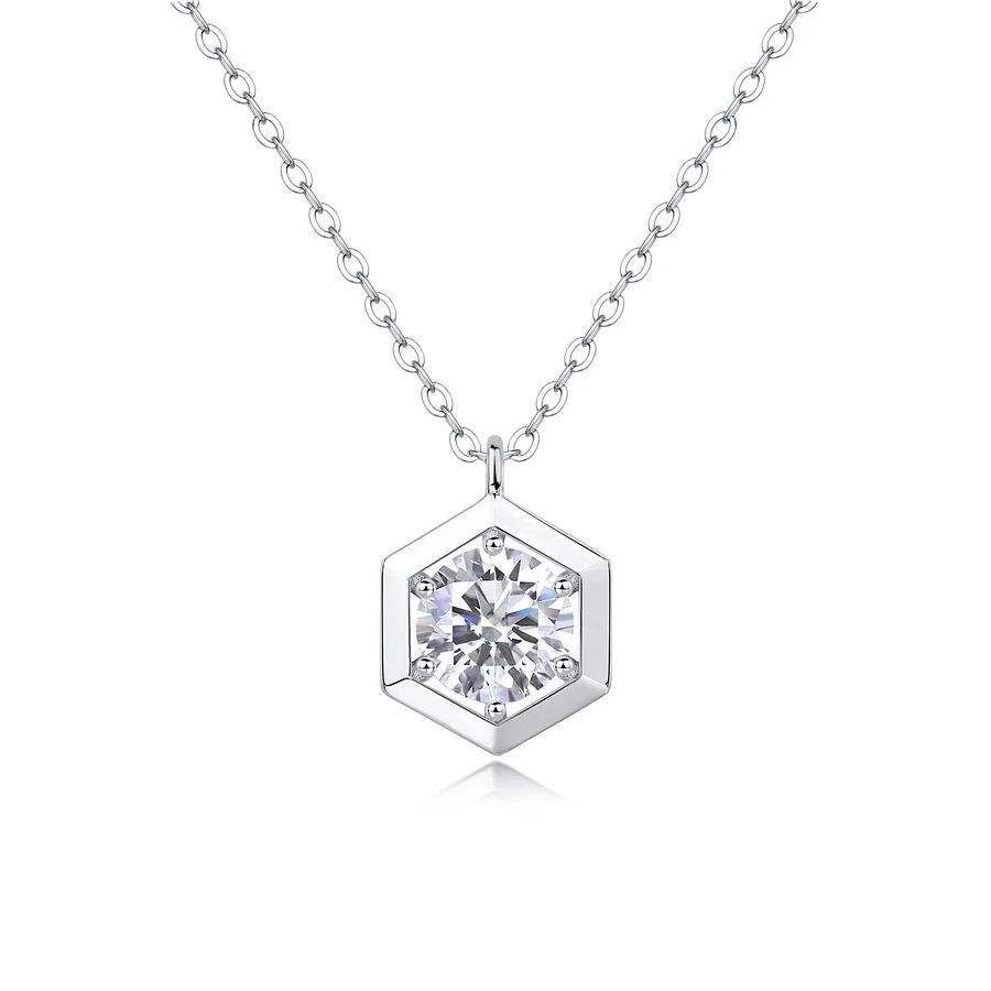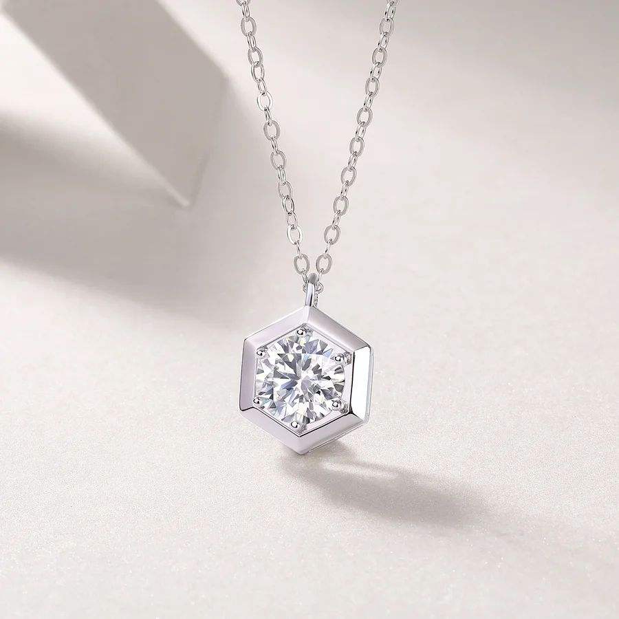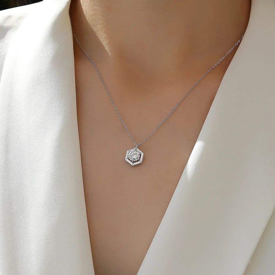 สร้อยคอจี้เพชรทรงหกเหลี่ยมหรูหรา ดีไซน์เรียบง่าย ทองคำขาว ประดับเพชรทรงเรขาคณิต ของขวัญสำหรับผู้หญิง